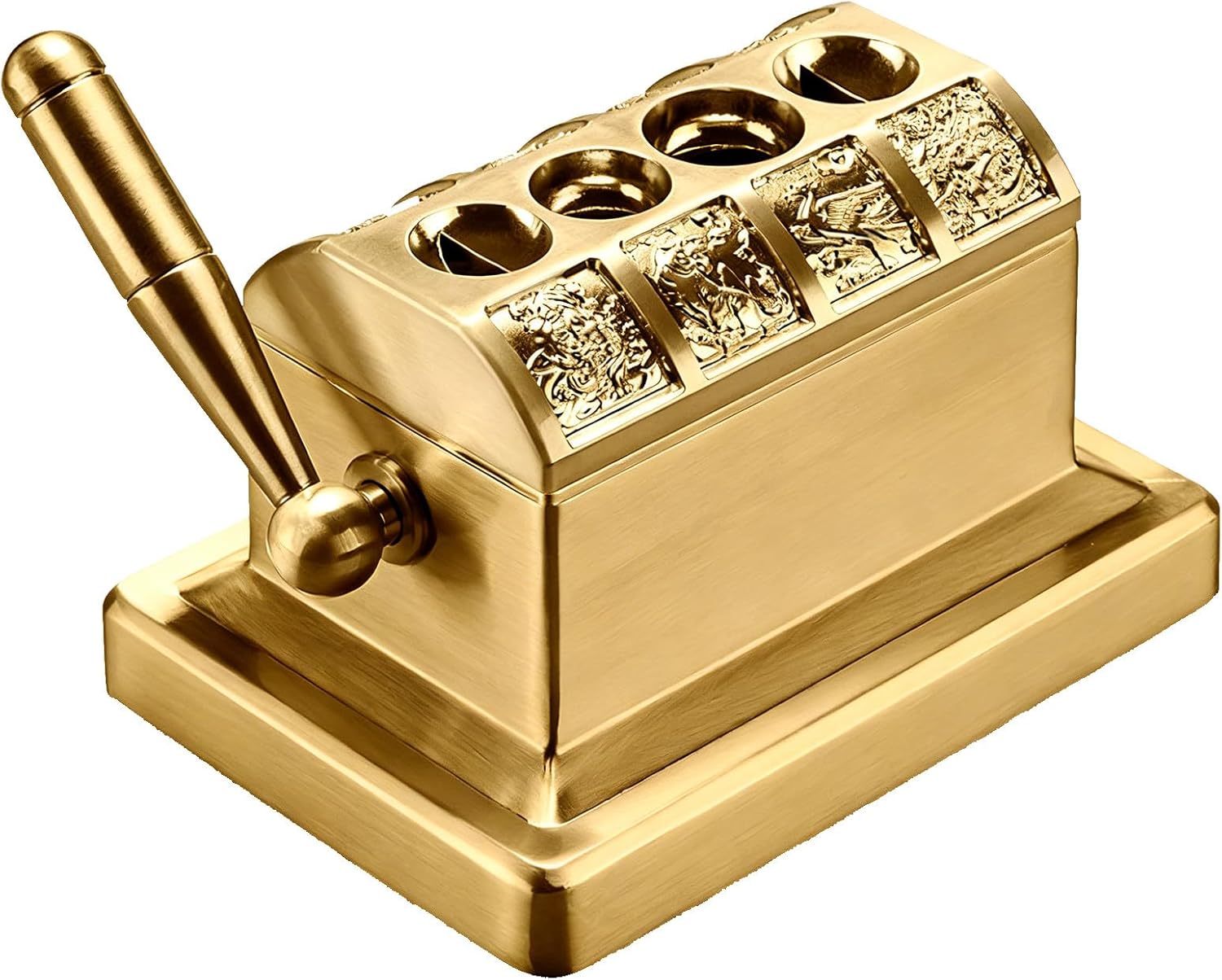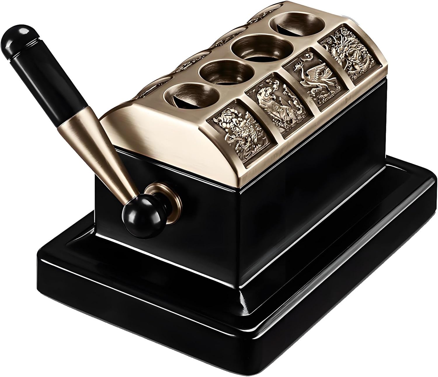 Still struggling with mismatched cutters for different cigar sizes? Tired of dull blades ruining your premium cigars? Meet your new go-to desktop cigar cutter—a blend of utility, artistry and collectibility that checks all boxes for cigar lovers!【Core Highlights】✅ 4-hole dual-cut modes✅ Military-grade steel blade✅ Intricate beast relief✅ Limited serial number✅ Non-slip stable base✅ Detachable crumb tray【Key Specs】- Size Compatibility: Fits 52-60 ring gauge mainstream cigars- Material: High-hardness stainless steel + vintage bronze finish- Design: Tabletop lever structure + anti-slip rubber feet- Feature: Removable bottom for easy cleanup- Dimensions: 155*110*95mm/6*4.3*3.7in- Weight: 1.6kg/3.5lb【Reliable Service】Dedicated customer support within 24 hoursA must-have tool for daily use, a standout ornament for your desk, and a thoughtful gift for every cigar enthusiast—don’t miss this limited-edition gem!