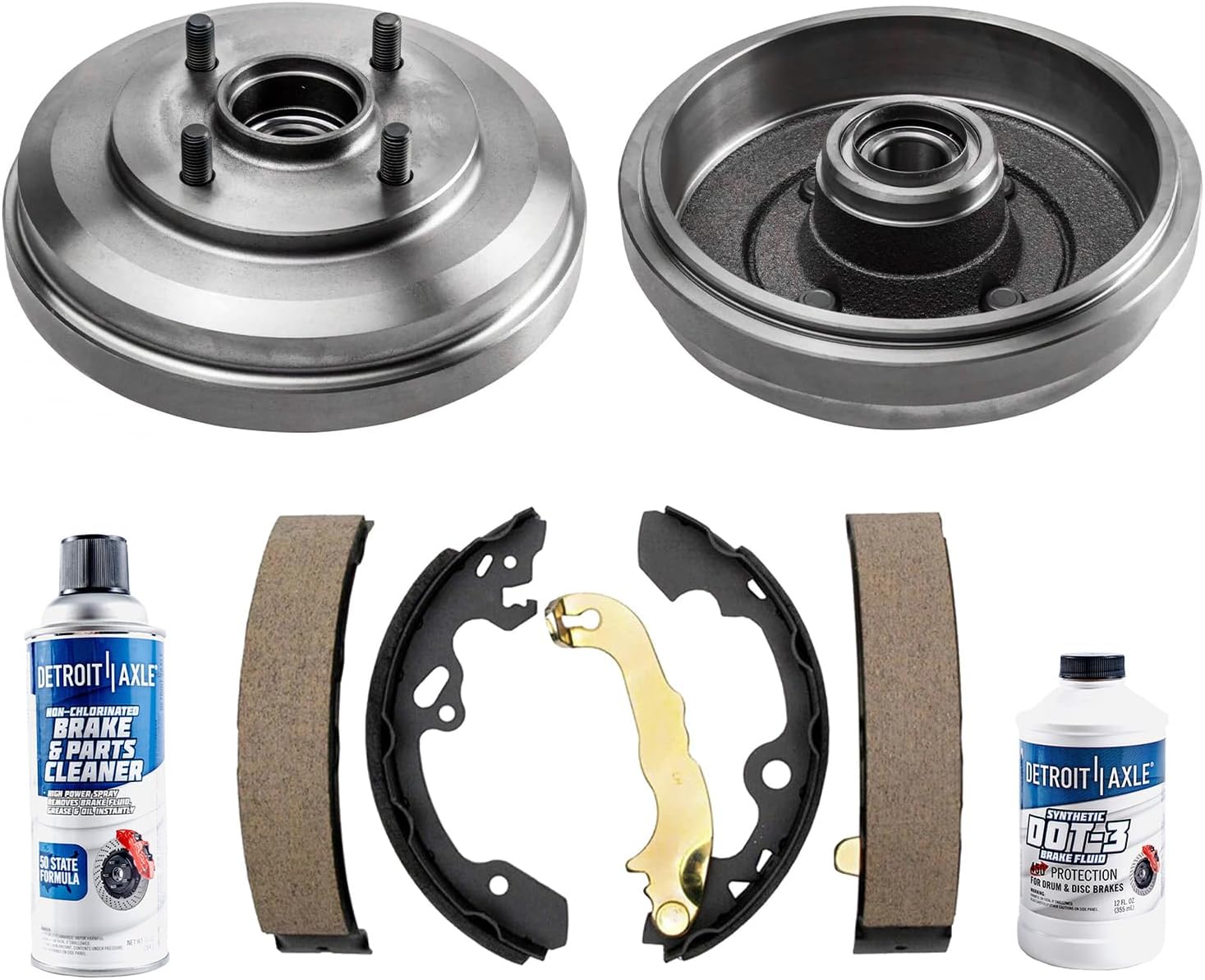 Kit Includes:2x - Brake Drums - DR-800982x Brake Shoes - SH-7601x 10oz Brake Cleaner Spray & 1x 12oz Brake Fluid BottleFitment:** Rear Brake Type: Drum **** NOT FOR Escape Hybrid, Mariner Hybrid Models & Tribute S Models**Replacement for 2007 Ford Escape (Built Before 1/07/07 Production Date)Replacement for 2001-2006 Ford EscapeReplacement for 2001-2006 Mazda Tribute (2005-2006: i Models ONLY)Replacement for 2007 Mercury Mariner (Built Before 1/07/07 Production Date)Replacement for 2005-2006 Mercury MarinerIntroduction:Detroit Axle is a leading global retailer and distributor of OE re-manufactured and new aftermarket auto parts. We are committed to providing first-class products and outstanding customer service at an incredible value. Our rapidly-expanding product line includes CV Axles, Wheel Hub & Bearings, Suspension & Chassis parts, Complete Strut Assemblies, Shock Absorbers, Drilled & Slotted Brake Rotors, Conventional Brake Rotors, Ceramic Brake Pads, Rack & Pinion Assemblies, Gearboxes, Drive Shafts and more. With over 30 years experience, we are proud that millions of customers around the world rely on Detroit Axle parts. We have two Metro Detroit storefront locations on the north and west sides of the city. Our flagship location, in the heart of Detroit’s 8 Mile Road, is a combined retail storefront and over 180,000 square feet of warehouse that serves as our global distribution center.