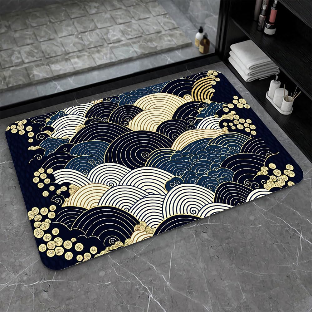 Features: [Beautiful pattern Design] Delicate pattern on a soft diatomaceous earth non-slip bath mat provides an artistical and relaxed feel to the bathroom.[Innovative Design]With the material of nano-level fiber, diatom mud latex mixture foam, as well as silicone rubber anti-skid foam, makes the rugs have upgraded absorption capacity. Meanwhile, it is no smell and no harm to health.this material is easy to clean and lasts for years.[Rubber Backing Technology] Super Water Absorbency Rug Mat Is Backed With Very Effective & Durable Rubber In Order To Prevent Skidding. The Rubber Backing Is Also Very Durable & Will Not Fall Off In The Washer Or Dryer. Prior To Placing The Rug On The Floor, Please Ensure The Floor Underneath The Rug Is Clean And Dry. Do Not Place The Rug On Wet Floors.[Multifunction] Apart from using it in the bathroom, it can also be used in your bedrooms, kid's room, laundry rooms, restaurant, hotel, banquet, wedding party as a doormat. Perfect bathroom gift for friends and family! [Keep Your dog and cat Area in Safe and Hygine]Whether you were annoyed by the wet residue or footprint on the floor during your cute doggy or kitten feeding time? You will love the fast drying, stain-resistant, and super absorbent rugs.Tips:Do not place it on sharp objects.