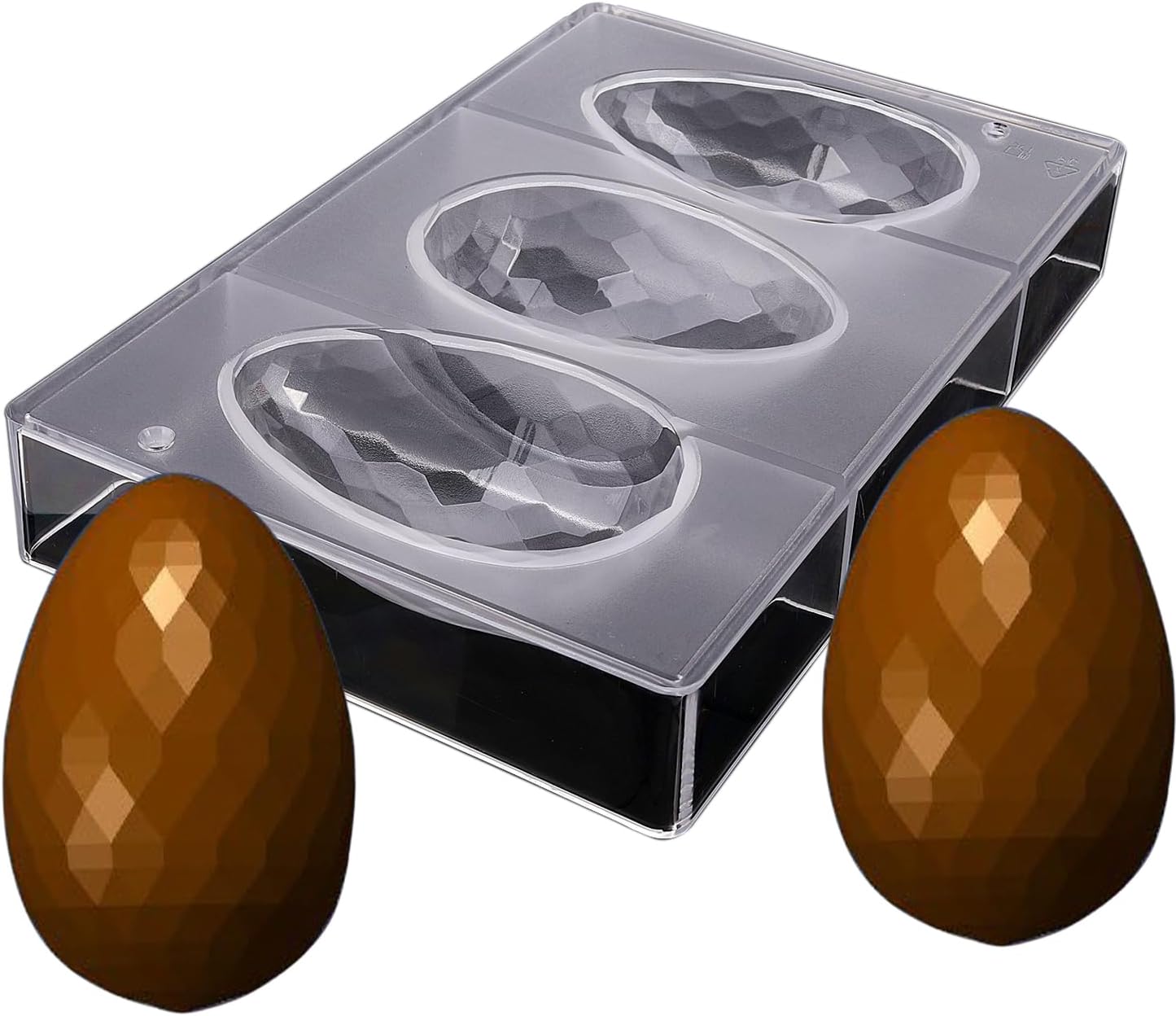 Different Diameter Easter Egg Smooth Stripy Textured Diamond Shape PC Plastic Dinosaur Eggs Chocolate Mold Half Candy Sugarcraft Making DIY Bakery (Textured 2442 Easter Chocolate Mold)