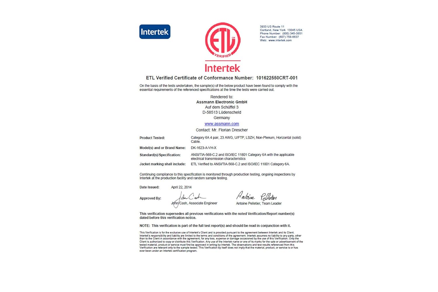 The Digitus® Cat.6A U/FTP installation cable is characterized by the following cable construction 4x2x AWG23/1 and reaches a transmission frequency up to 500 MHz. The halogen free cable jacket is conform to the standard IEC 60332-1, FRNC-B, LSZH-1 and CPR Euro class Eca. The cable is suitable for building structured cabling in the secondary and tertiary area. Compliant with the following standards ISO/IEC 11801, DIN EN 50173, DIN EN 50288-10-1.