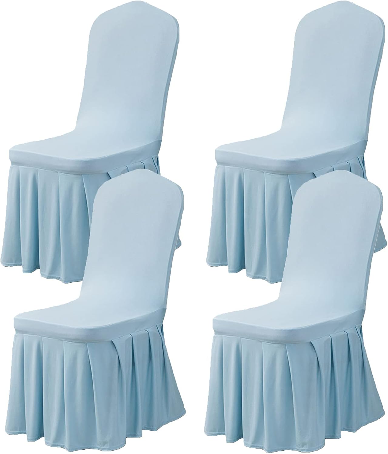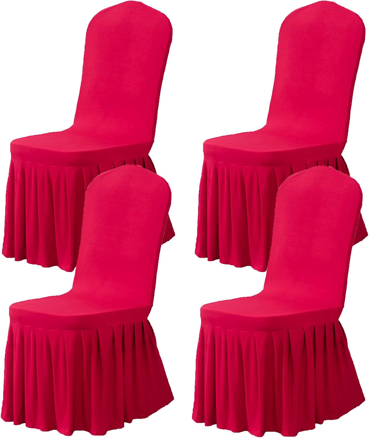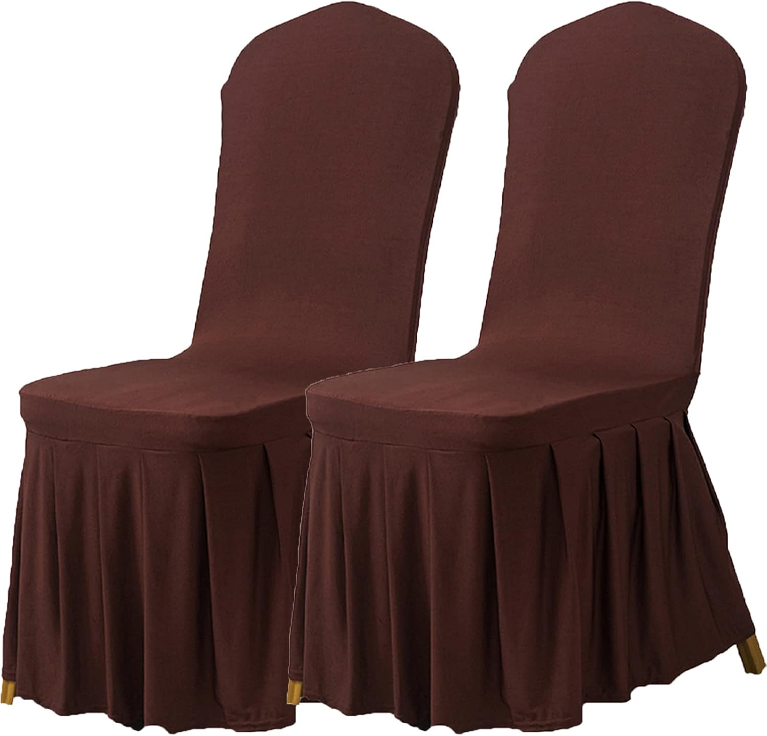 Dimatic Dining Chair CoverAre you looking for some nice chair covers to decorate your old or damaged chairs for dining room or parties? Our dimatic fashionable and graceful lotus leaf skirt design chair cover covers are made of stretchable material, which is durable. It can also easily cover the solid legs of the stool, bringing you a different graceful appearance of the chair cover and enhance the luxury feeling of the events.Surper Soft FabricHigh persistence soft polyester and spandex yard fabric, which is duarable and breathable.Precise LiningMade by skilled technicians with exquisite stitching to ensure elegant looking, and ensure that every inch is firm and no loose threads.Perfect for Different OccasionsIt is a perfect choice for Hotel Wedding Banquet Birthday Party Dining Room Meeting Gelebration Ceremony,Family Garthing decoration,etc. One-peice dining chair cover.Specifications:* Fabric: 95% polyester 5% spandex fabric.* Variety color to choose.* Wrinkle resistant & fadeless * Lotus leaf skirt design can easily cover the solid legs of the stool * Easy to care and Machine washable.Recommend Size of ChairBack Height 17.7 Inch-23.6Inch (45-60 cm); Seat Length 15.7 Inch-19.7 Inch (40-50 cm); Seat Width 15.7 Inch-19.7 Inch (40-50 cm).