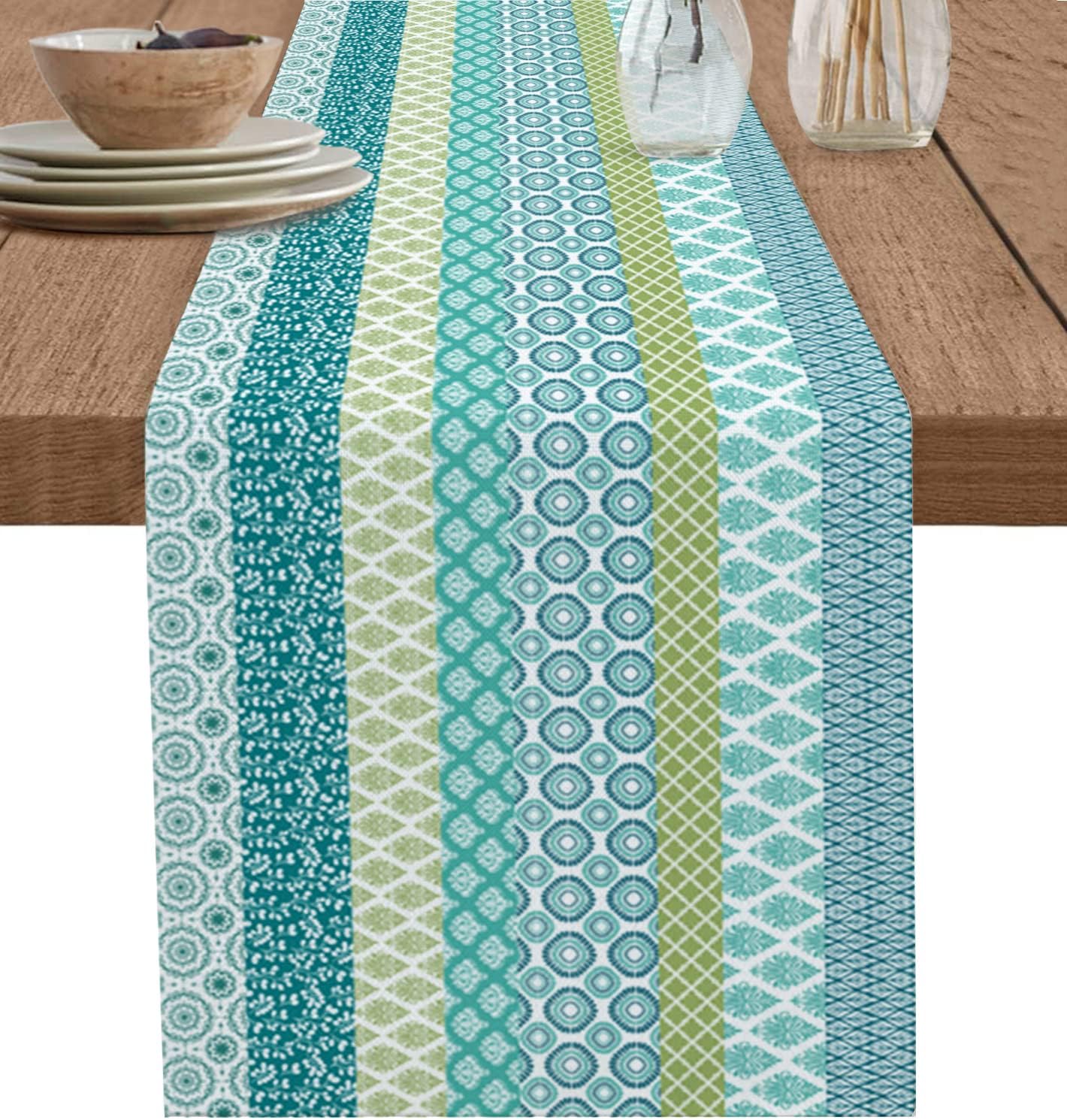 🆕 Our creative table runner is a essential table setting to set a good mood during meal,help you to enjoy every meal.🍮 Main Features:Unique design styles will make your table have a good visual effect and appealing,stylish table runner can creat a pleasant and relaxing feeling,perfect for indoor and outdoor party events.Tablerunner with quality polyester is long-lasting and durable also makes it a great choice during serving meals to protect the table.Not only beautiful also practical.🍮 Multifunction:Exquisite table runners can decor dining table,coffee table,entry way table and dresser etc.🍮 Multi-purpose:Great for any occasion,such as wedding,party,brunch,dinners,office,hotel,housewarming,birthday,graduation,anniversary and holiday.🍮 Specifications:Material:PolyesterPacking Include:1 Piece table runnerSize Info:☄13x70in(33x178cm)☄13x90in(33x229cm)☄14x72in(36x183cm)☄16x72in(41x183cm)☄18x72in(46x183cm)☄13x108in(33x274cm)☄13x120in(33x304cm)☄13x36in(33x91cm)☄13x72in(33x183cm)🍮 Care Guide:Machine washable,cold water with gentle cycle.Line or tumble dry,iron on low temp,🈵 Service:If you have any questions,please contact us at any time!