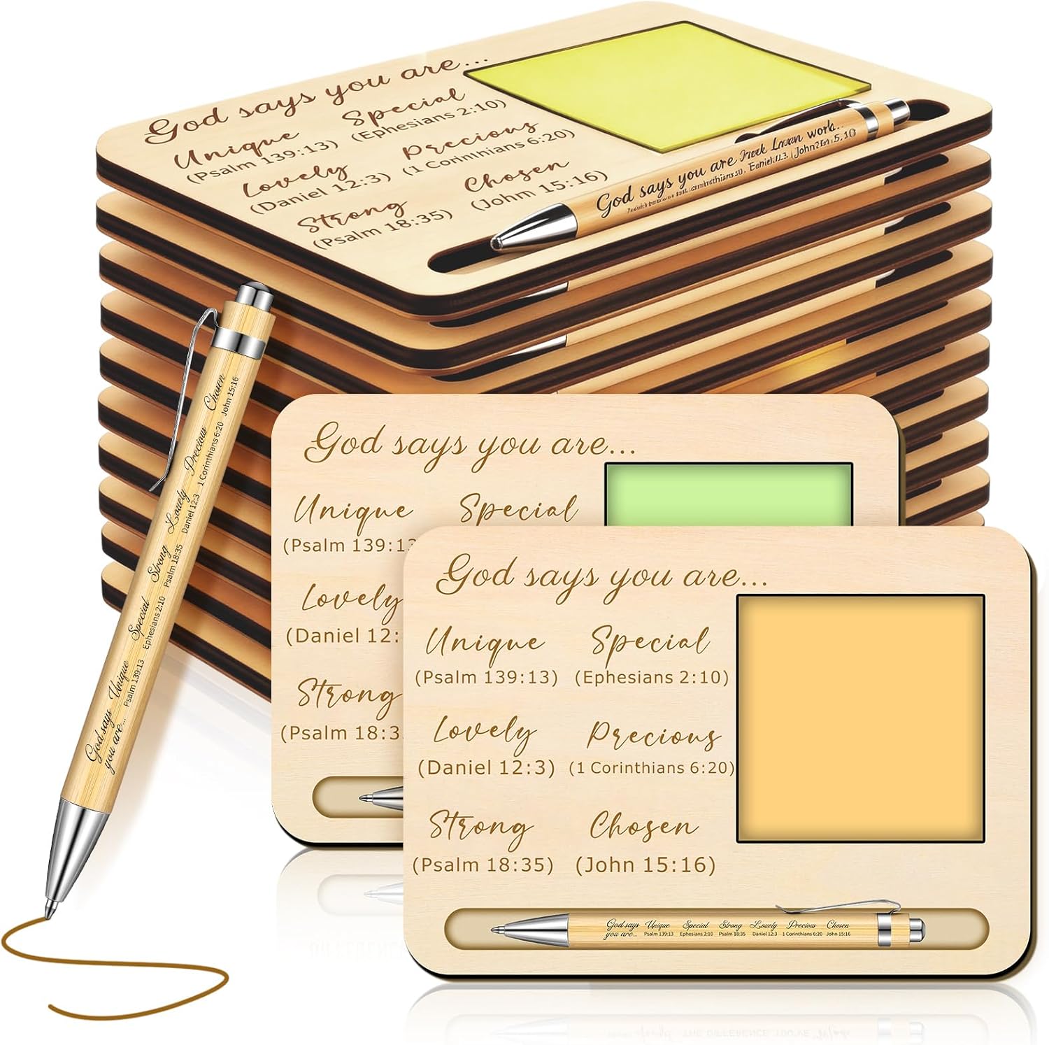 Features: Practicality: Wooden sticky notepads are mainly applied to store sticky notes and pens, which is convenient for access at any time and improves work efficiency. Because pine wood is light, the pen holder is easy to move and carry, and the position can be adjusted according to actual needs. Show your appreciation: Whether you want to thank your staffs, colleagues, nurses or volunteers, express your gratitude with these inspirational notebook and ballpoint set, the empowering words will lift their spirits, leaving unforgettable memories that will motivate and encourage them. Specifications: Material: wood, paper, metal Color: black gold Size: Wooden sticky notepads: about 7.68 x 5.51 inches/ 19.5 x 14 cm Sticky notes: about 2.99 inches/ 7.6 cm Ballpoint pens: about 5.91 inches/ 15 cm Package includes: 20 x Wooden sticky notepads 20 x Sticky notes 20 x Ballpoint pens Notes: Manual measurement, please allow slight errors on size. The color may exist a slight difference due to different screen displays