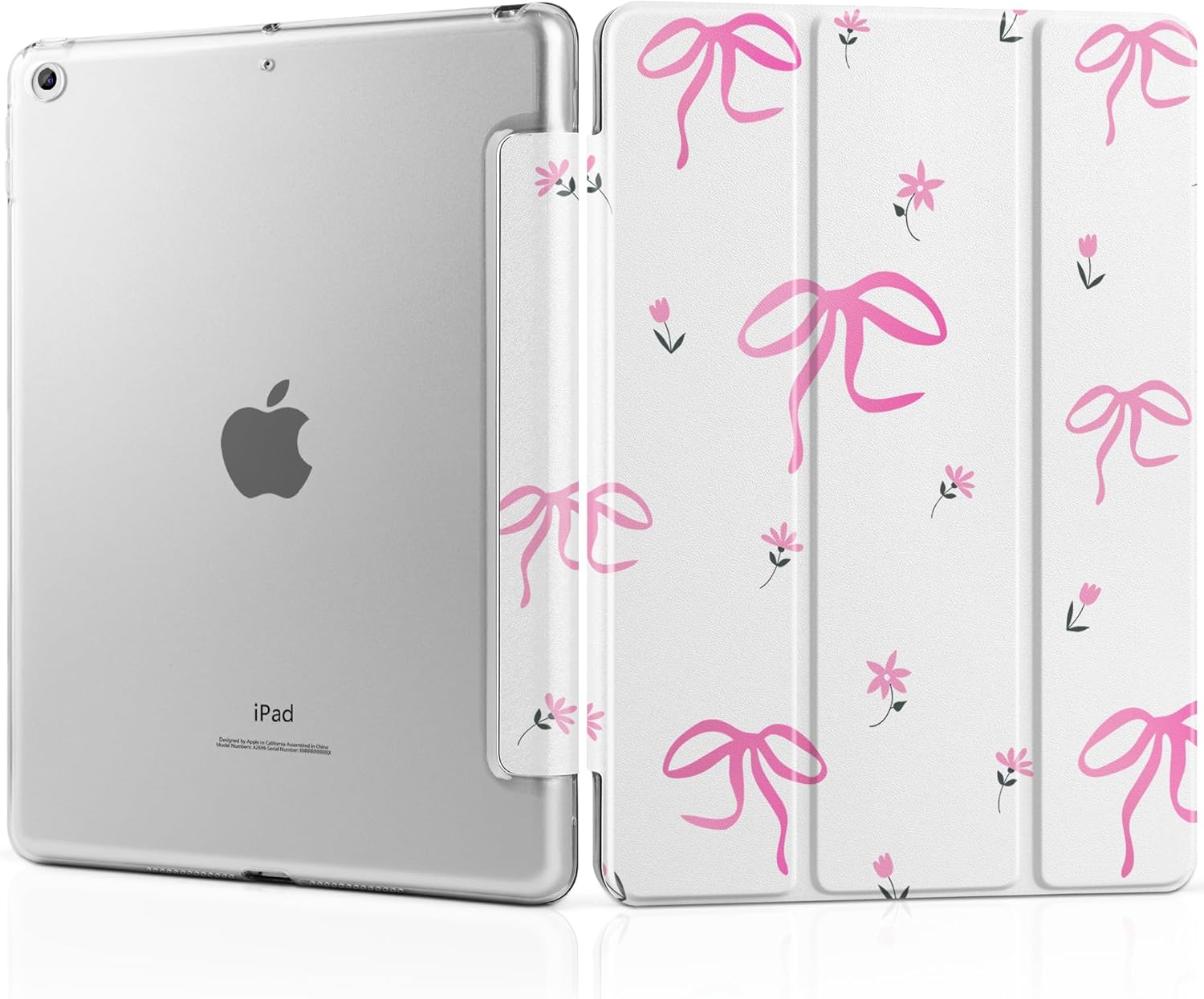 DONGKE Compatible with iPad 10.2 Inch Case 2021 2020 2019, Smart Lightweight Trifold Stand Hard Plastic Transparent Cover Support Auto Sleep/Wake for iPad 10.2" 9th/8th/7th Generation - Bear with Bows