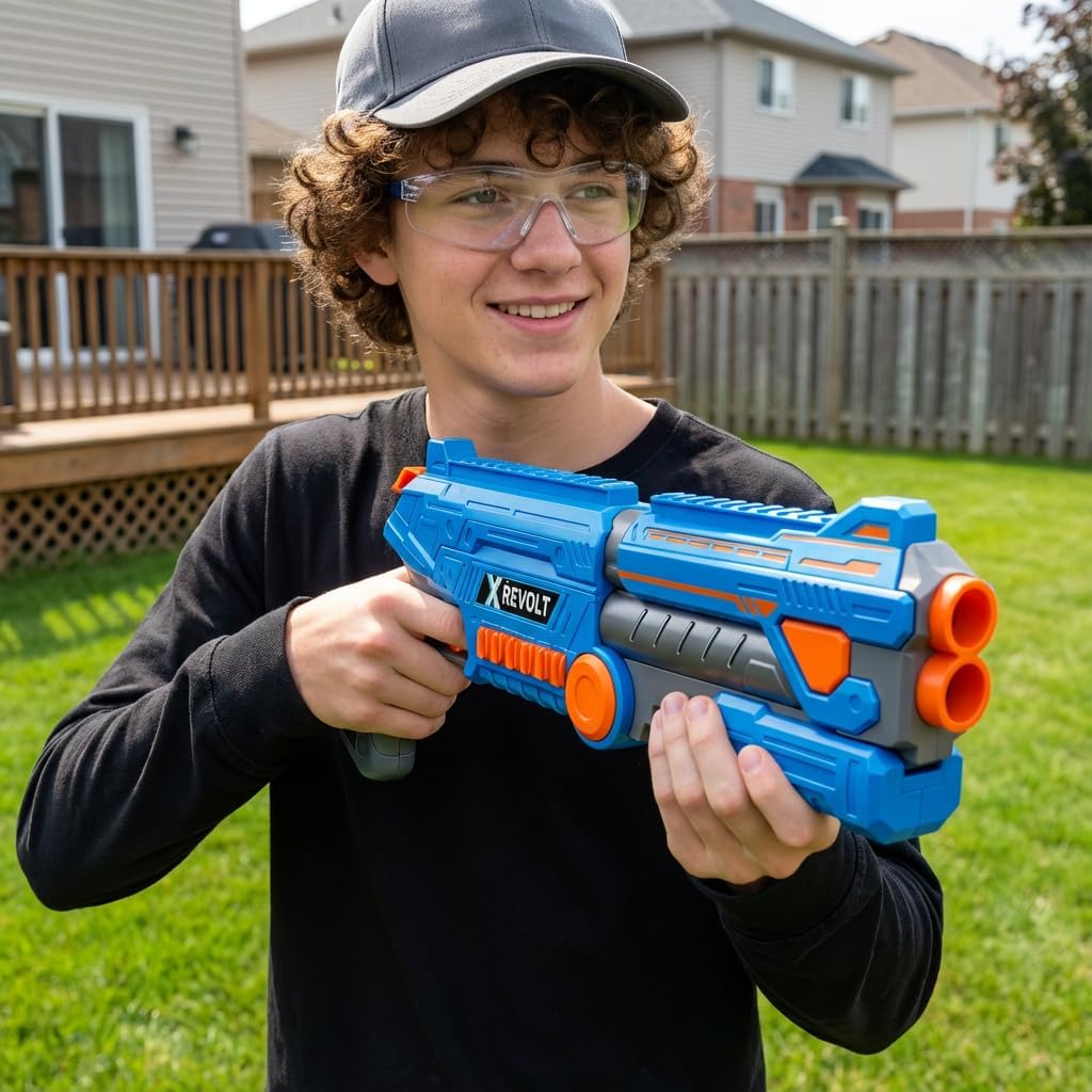 • 【Classic Double-Barrel Styling】 Command the battlefield with the imposing look of a classic double-barrel shotgun! While featuring a dual-barrel design, this blaster is engineered for focused single-shot precision. Its authentic profile makes it a standout piece in any foam blaster collection, perfect for role-playing and competitive outdoor games.