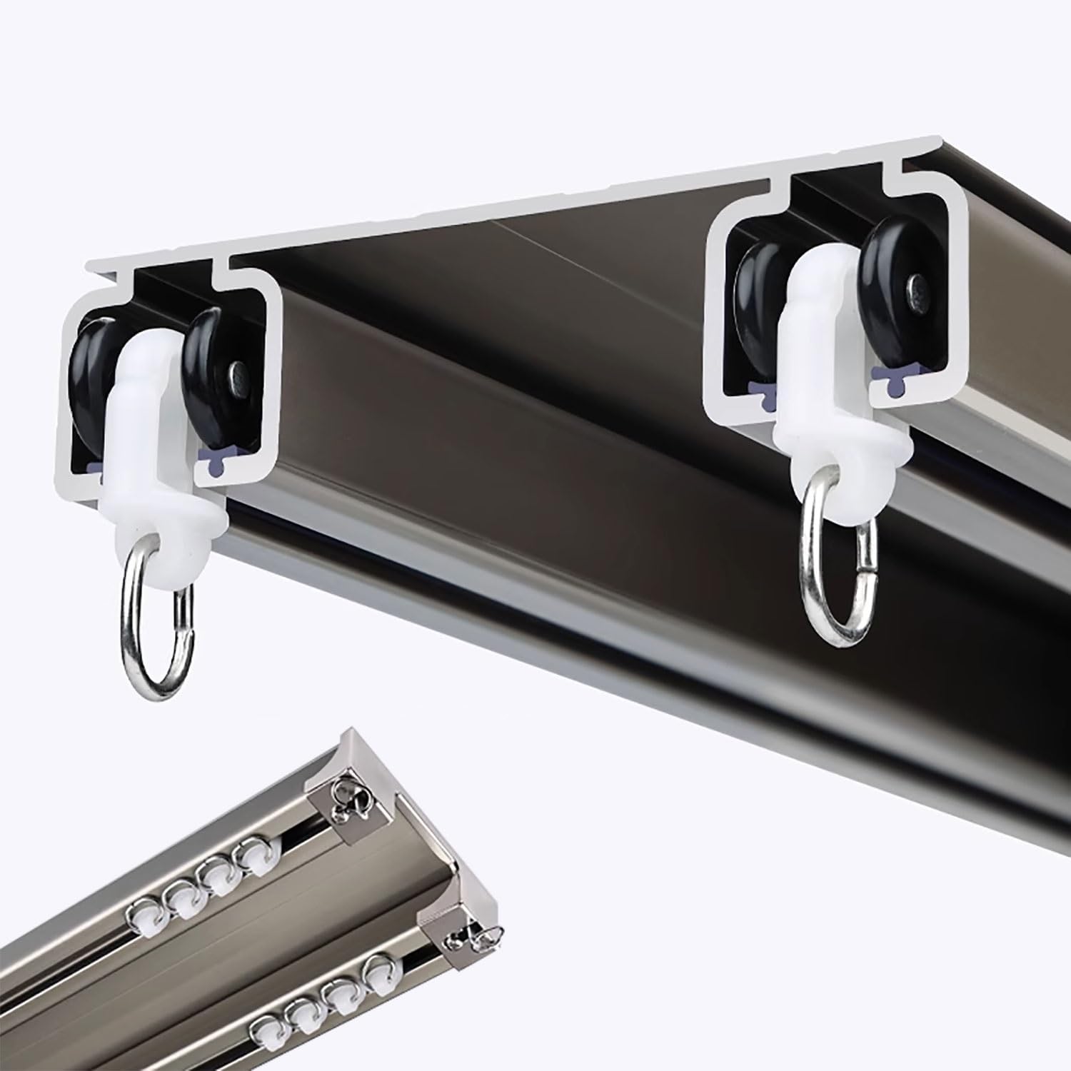 Name: Double-Row Curtain Track / Heavy-Duty Curtain Track / Double Curtain RodMaterial: Aluminum AlloyProcess: ElectrophoresisInstallation Method: ceiling MountedHanging Method: Hook-StyleApplications: Living Room, Bedroom, Bathroom, Shower Enclosure, Hotel, Hospital, RVPackage Includes:Track, Rollers (pulley) *16, End Caps, ConnectorsFeatures:This curtain track set is crafted from premium aluminum alloy, offering a sturdy and durable structure. It eliminates the hassle of purchasing individual track components separately. Our complete set includes everything needed for installation, helping you achieve a flawless finish in your space.Important Note:Due to shipping length restrictions, curtain tracks exceeding the limit must be installed in sections. We provide specialized track connectors for seamless joining between sections without affecting functionality. These connectors will be included in your shipment.About Service---We strive for your complete satisfaction. For any service inquiries, please contact us.About Color---Actual colors may vary from images due to camera settings, lighting conditions, and monitor differences. The physical product is the final reference—this does not constitute a quality issue!About Dimensions---Manual measurements may have slight deviations (±1-2cm). The physical product is the final reference—your understanding is appreciated.