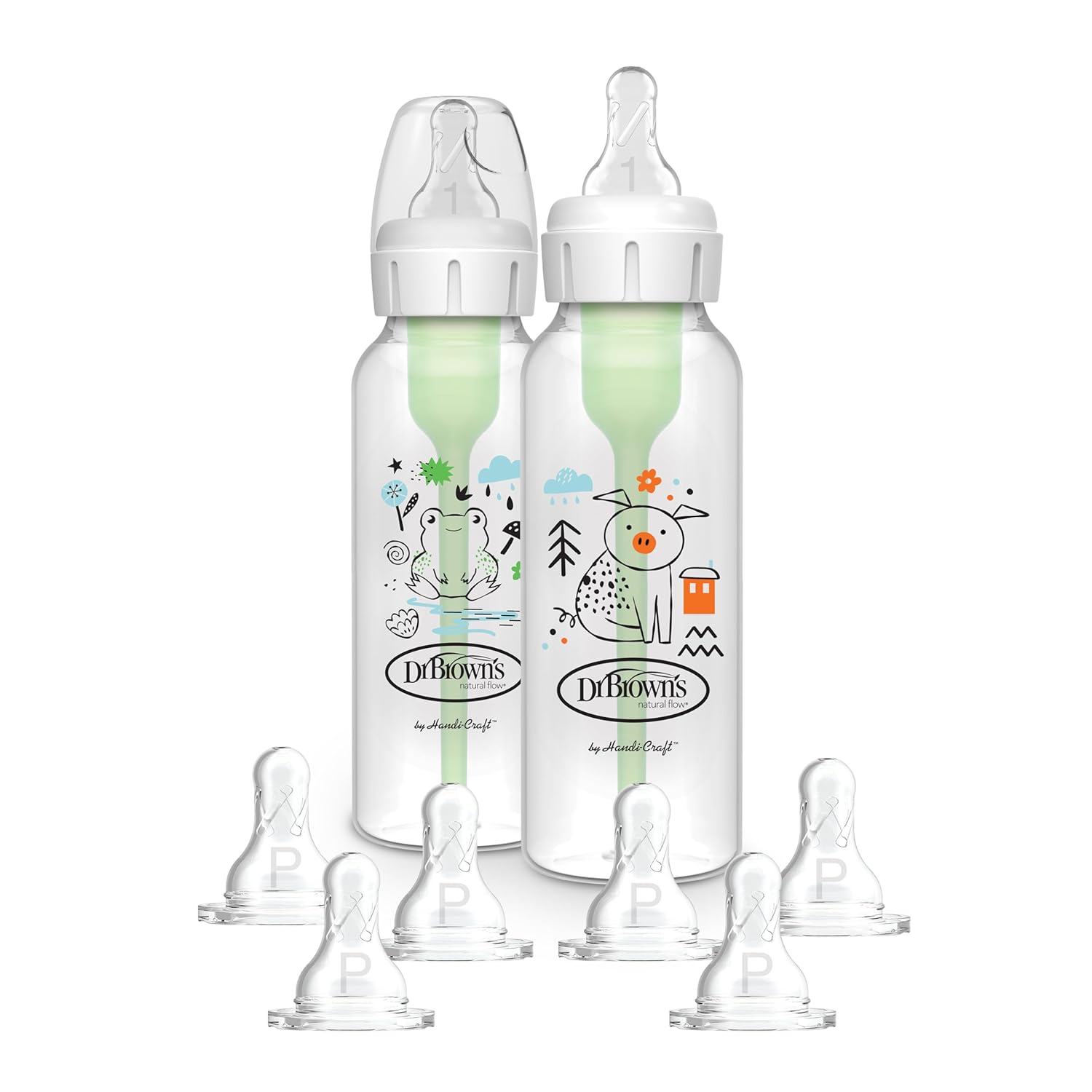 Your options have never been better with Dr. Brown’s Natural Flow Anti-Colic Options+ Narrow Baby Bottle. The anti-colic internal vent system is clinically proven to reduce colic. Dr. Brown’s bottles provide a more comfortable feeding experience for baby by decreasing spit-up, burping and gas. This vacuum-free feeding is closest to breastfeeding and Dr. Brown’s silicone nipples provide a consistent flow so baby can feed at their own pace. The breast-like nipple shape encourages a proper latch for a more natural bottle feeding experience and eases the transition from breast to bottle and back again. Dr. Brown’s vent system is proven to help preserve bottle milk nutrients and aids in digestion for a better night’s sleep. The silicone nipple, together with the internal vent system, offer a reliable and trusted bottle feeding experience that makes Dr. Brown’s the #1 Pediatrician Recommended Baby Bottle in the U.S.* Made to grow with baby, our bottle is designed to nourish through all of baby’s feeding stages and is recyclable. Safe for use in dishwasher (top rack only), electric and microwave sterilizers or boiling water. BPA Free. *IQVIA Health ProVoice Survey 2022