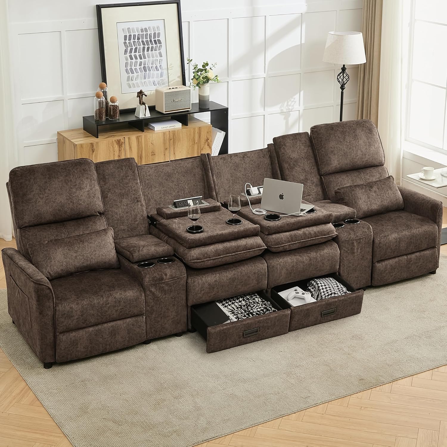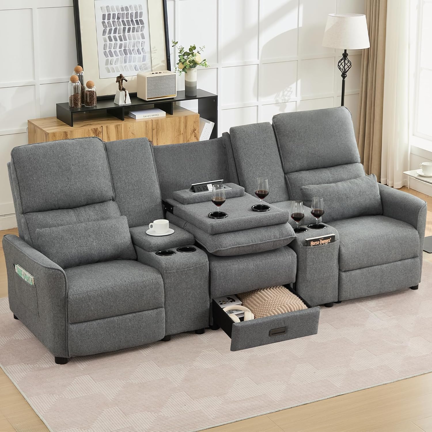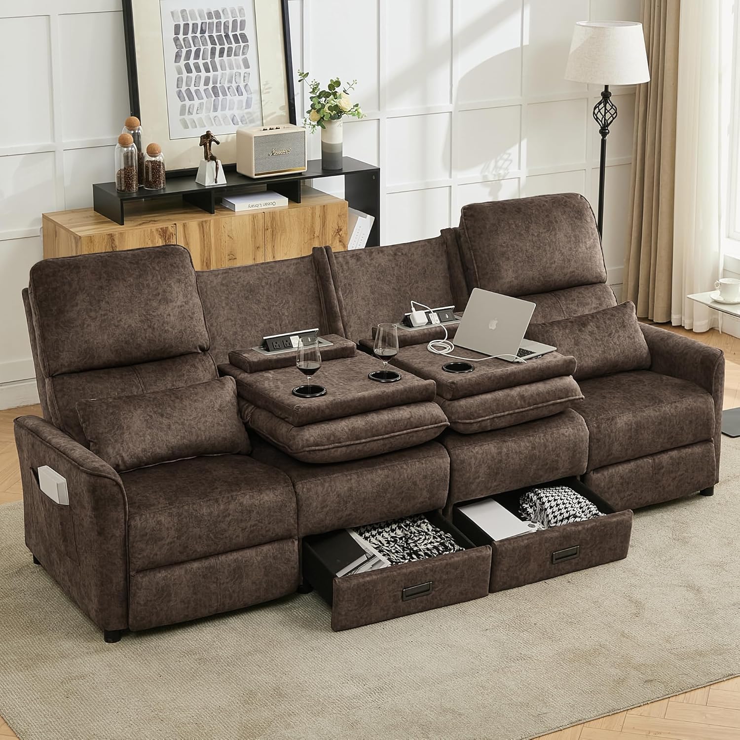| Included Components | Cup Holders, Drawer, Side Pocket, Throw Pillow, USB Port |