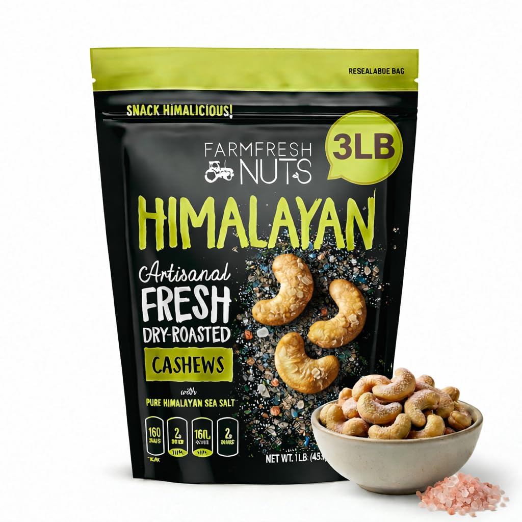 Dry Roasted Cashews Himalayan Salted (2 Lbs.) - Baked in Small Batches for Added Freshness - Oven Roasted to Perfection without Oil - Farm Fresh Nuts Brand