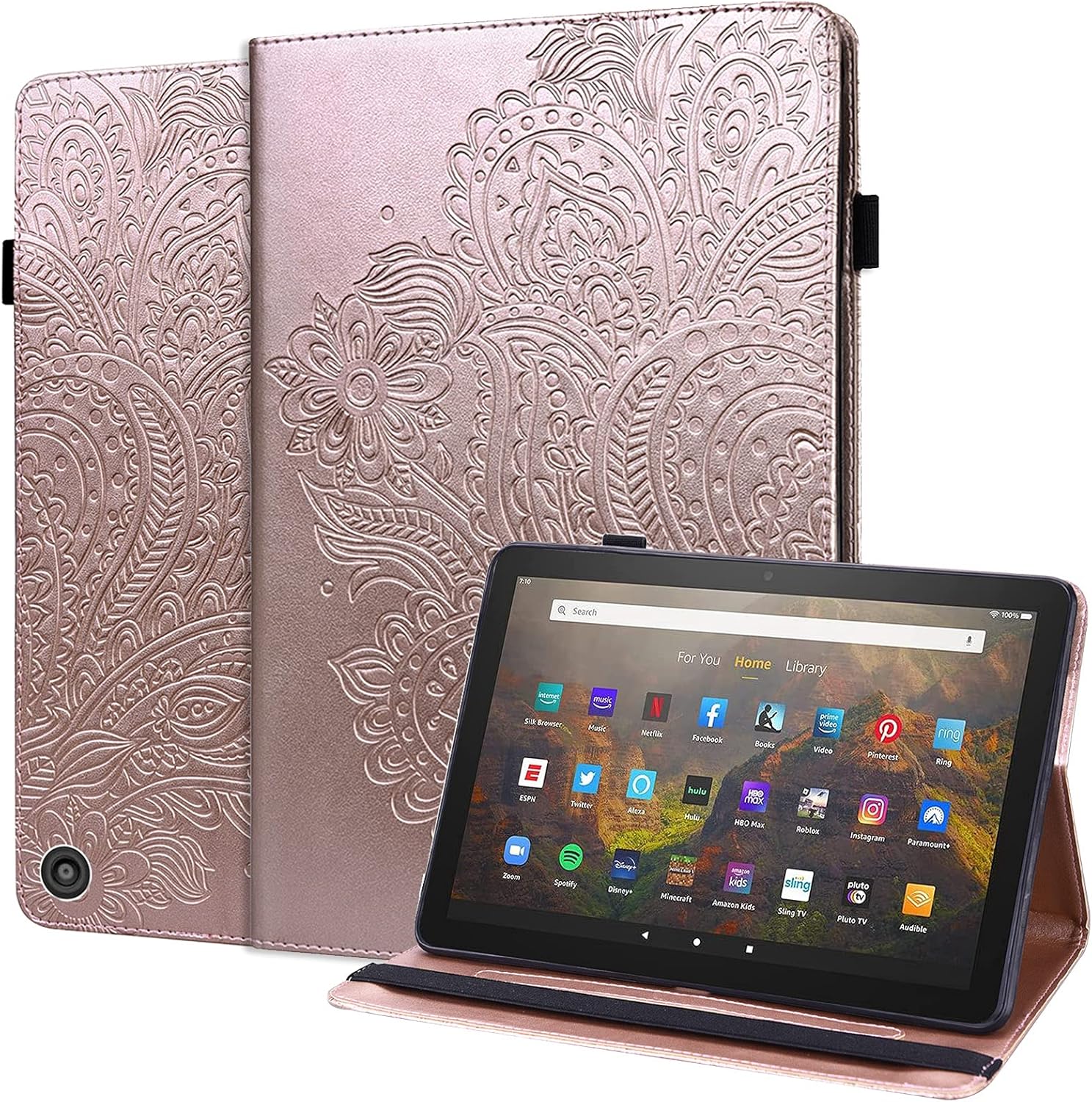 PACKAGE INCLUDED: -1 x Dteck Fire HD 10 Case 2021 -1 x Random Color Stylus Pen (Gift) -1 x Cleaning Cloth (Gift) COMPATIBILITY: Exclusively designed for the Newest Amazon Fire HD 10 & Fire HD 10 Plus(2021 Released, 11th Generation), Not compatible with any other kindle devices SHOCKPROOF PROTECTION: Soft TPU back shell protect your Amazon Fire HD 10 case 2021 from shocks, drops and impacts PRECISE CUTOUTS: Allow full access to all features (buttons, speakers, cameras) AUTO WAKE SLEEP:Provides auto sleep/wake function with built-in magnetic strip MULTIPLE ANGLES STAND: Folio magnetic cover easily transforms the HD 10 2021 case into viewing and typing stand PREMIUM MATERIAL: PU leather case with TPU edge offers strong protection BEAUTIFUL PATTERN: Add a stylish look for your fire hd 10 & hd 10 plus tablet. Various colors for you to choose from.
