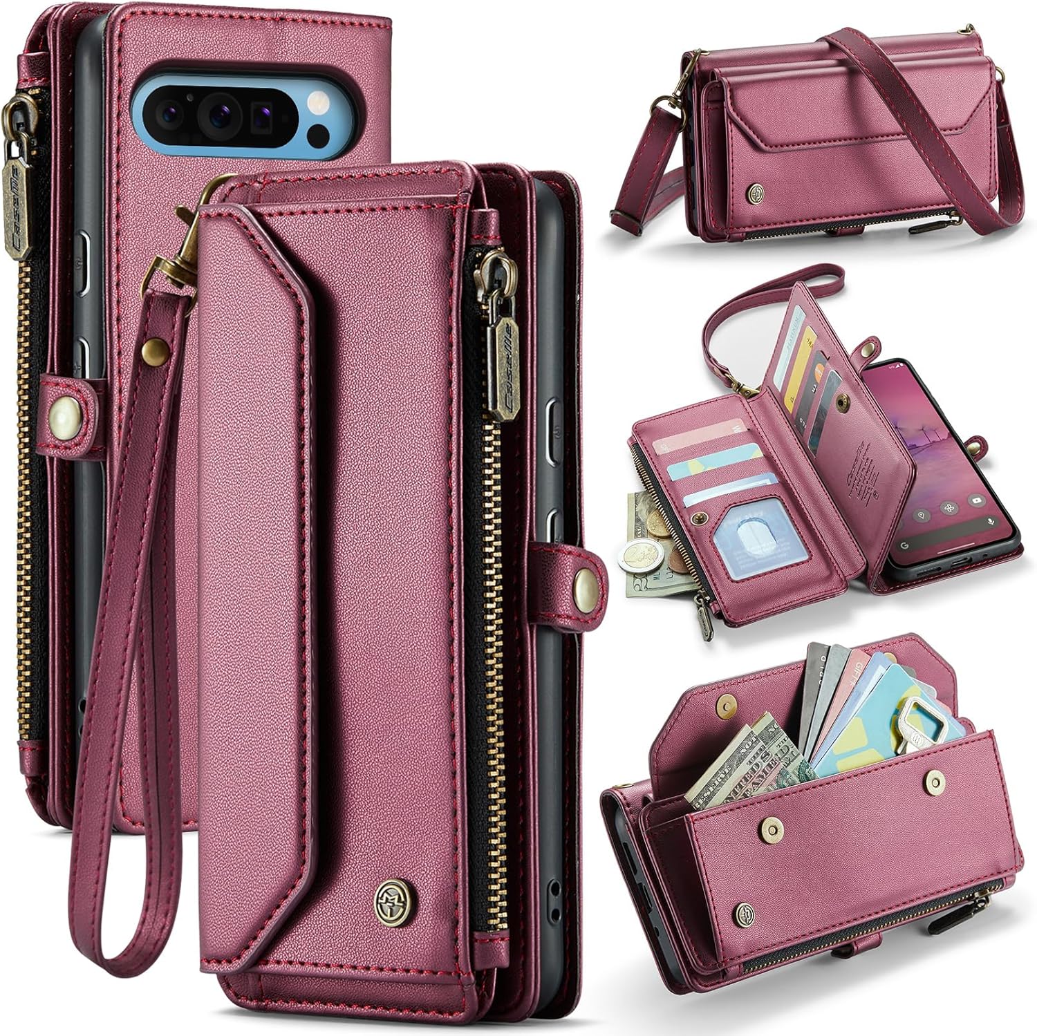 Protect and organize your essentials with this Dteck multifunctional flip wallet case for Google Pixel 10 Pro XL (2025 release, 6.8" display). Designed for daily convenience, it combines a phone case, wallet, and crossbody bag in one compact accessory. Smart Storage: Features 7 card slots, 1 cash slot, 1 zippered coin pocket, and a spacious front pocket for easy organization of your essentials. RFID Blocking Security: Built-in protective lining helps safeguard credit cards and IDs from unauthorized scans, offering peace of mind wherever you go. Multiple Carry Options: Use it as a crossbody, shoulder bag, or wristlet with the adjustable detachable strap and lanyard. Flexible to fit work, travel, or casual outings. Hands-free Viewing: Flip case can be folded into a stand for hands-free video calls, reading, or streaming in landscape mode. Compatible with Wireless Charging: Charge your phone wirelessly without having to remove the wallet phone case. Durable Build: Crafted with PU leather, reinforced stitching, a shock-absorbing silicone interior shell, and smooth zipper to protect against drops, scratches, and daily wear. Perfect Fit: Tailored cutouts for cameras, ports, and buttons ensure easy access and reliable phone protection. Secure Closure: Magnetic snaps and a zipper pocket provide quick access while keeping valuables safe. Ideal for both men and women, this lightweight flip wallet phone case is the perfect companion for work, errands, travel, or nights out. Combining functionality, security, and style, it keeps your phone and essentials protected wherever life takes you. Package includes: 1 practical flip wallet case, 1 shoulder strap, 1 wrist lanyard
