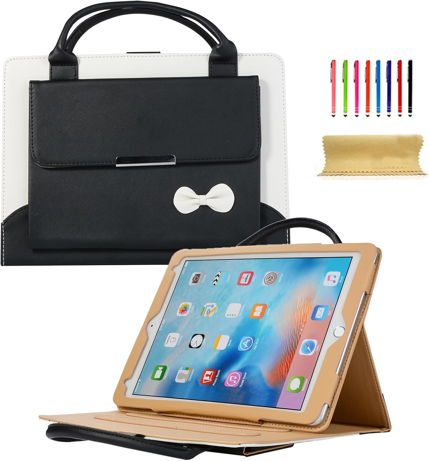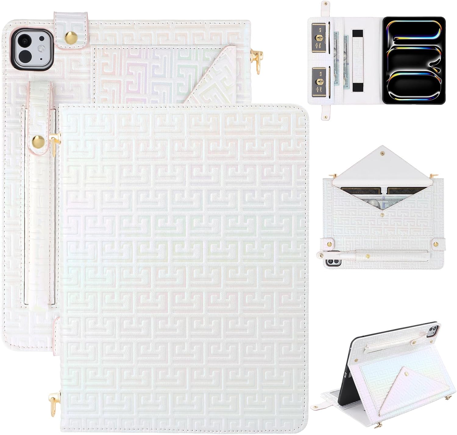 Compatible with iPad Pro 13-inch (M4/M5, 2024/2025 Release) Dteck handbag design stylish shiny multifunctional folio tablet case is precisely designed for iPad Pro 13-inch (M4/M5, 2024/2025 Release), model number on the back cover: A2925/A2926/A3007/A3360/A3361/A3362. Offers perfect cutouts for the camera, speakers, and ports, snug fit while maintaining smooth operation of all buttons and functions without removing the case. Stylish Faux Leather Exterior with Gradient Shine Crafted from premium faux leather and soft silicone, this heavy duty case for iPad pro 13" features a shimmering gradient finish that adds elegance and personality. It not only looks luxurious but also provides full-body protection, with magnetic snap buttons to securely close the folio case when not it use, protecting your device from scratches, stains, fingerprints, accidental drops and bumps. Built-in Stand Folio case for iPad pro 13-inch can be opened and formed into a stand, propping your device up for hands-free viewing in landscape mode, easy to read, video call, or watch movies. Whether at home, in the office, or on the go, you can enjoy a hands-free viewing experience with ease. Multiple Card/Cash Slots & Button Closure Glitter folio case for iPad pro 13" with multiple card slots, cash slots and a big pocket, allows you to store IDs, credit cards, bills, receipts, earphones, charging cables, notes, or small items safely with your device while on the go. The secure buttons keep your flip case closed tightly, ensuring your device and accessories stay protected wherever you go. Detachable Shoulder Strap for Easy Carrying Folio case for iPad pro 13" with an adjustable and detachable shoulder strap transforms your tablet into a portable handbag or crossbody case. Perfect for students, business professionals, and travelers who value both convenience and fashion. Built-in Hand Strap for A Secure Grip This iPad Pro 13-inch folio case with a built-in elastic hand strap allows you to hold your tablet comfortably and securely with one hand when you fold the folio case on back. Convenient Strap This glitter folio case for iPad pro 13 inch includes an adjustable, detachable shoulder strap, so you can carry it as a tablet bag or crossbody case with ease, perfect for commuting, traveling, or outdoor use.br> Built-in Pencil Holder Practical folio case for iPad pro 13" with a pencil holder allows you to easily store and access your Pencil whenever you need it, eliminating the need to carry a separate case or worry about misplacing your stylus.br>br> Package List 1 Stylish Glitter Gradient PU Leather Folio Tablet Case, 1 Shoulder Strap, 1 Sreen Protector Film, 1 Stylus (Random Color), 1 Cleaning Cloth.
