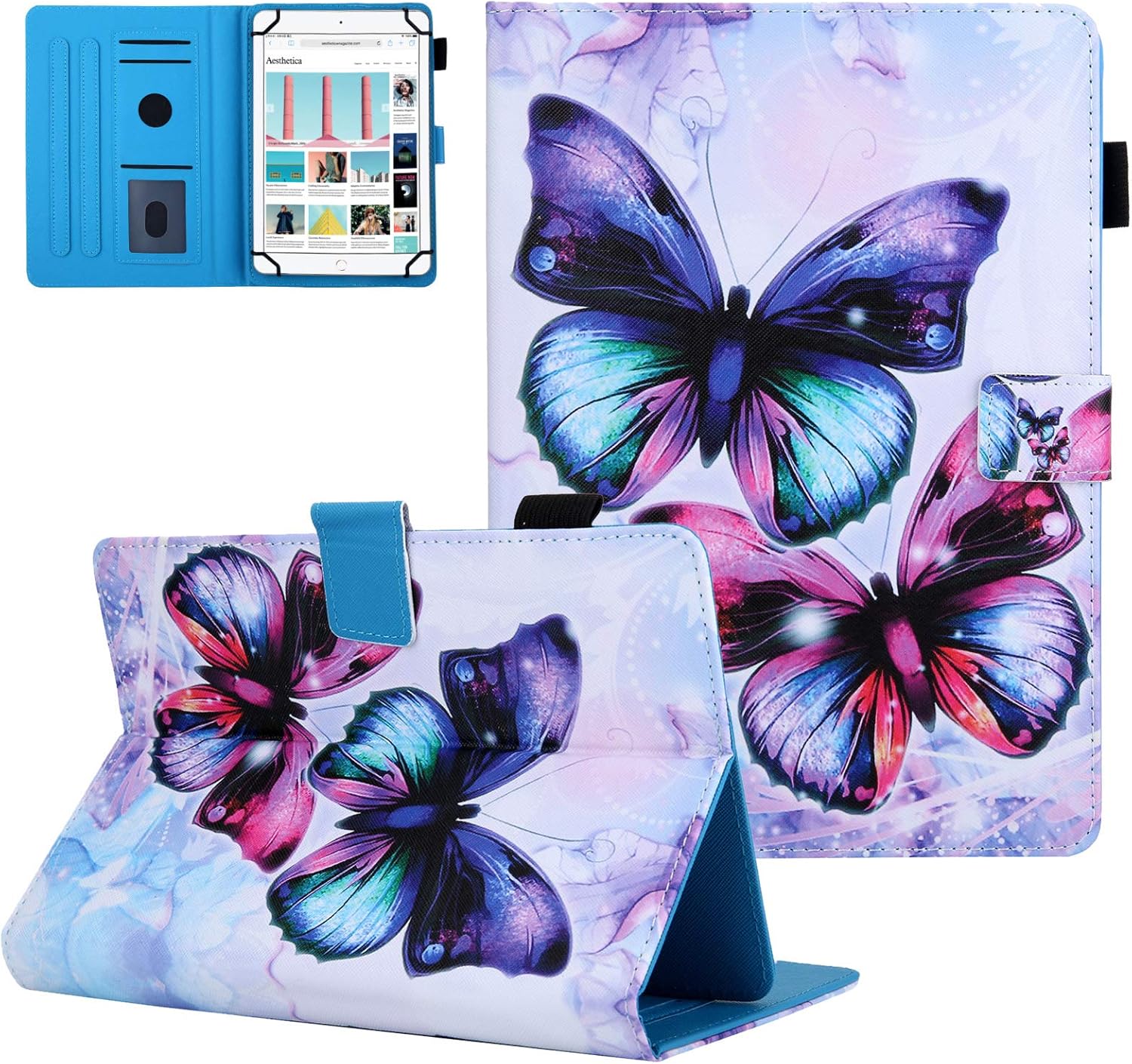 Dteck Universal Tablet Case with Multi-Viewing Angels Stand - Compatible with iPad and Android Devices Which Display Size is Greater Than 9.5 inches and Less Than or Equal to 10.5 inches. This versatile universal tablet case is designed to offer protection and convenience for most 9.6/9.7/10/10.1/10.2/10.3/10.4/10.5 inch tablets, including both iPad and Android devices. Whether you're using your tablet for work, entertainment, or study, this case provides the perfect balance of style and functionality. Built-in Handle: offer unmatched portability, transforming your tablet into a briefcase-style companion, making it easy to carry, ideal for travel, school, office, or daily commutes. Full Coverage Protection: made from pu leather, elastic band and plastic, and designed with a secure magnetic strap closure, this case safeguards your device from scratches, bumps, and everyday wear and tear. Multi-Viewing Angels: Enjoy hands-free viewing in landscape orientation with the case's stand feature. Easily adjust your tablet to different angle for comfortable movie watching, video calls, or browsing. Multi-Purpose Storage: Stay organized on the go with built-in card slots and a big zipper pocket. The practical folio design allows you to store your essentials like credit cards, IDs, small items and stylus/pen all in one convenient case, perfect for meetings, travel, or just day-to-day use. What's in the Package? 1 Dteck Universal Tablet Protector Case for Most 9.6/9.7/10/10.1/10.2/10.3/10.4/10.5 inch Tablets 1 Dteck Stylus Pen (random color) 1 Dteck Clean Cloth