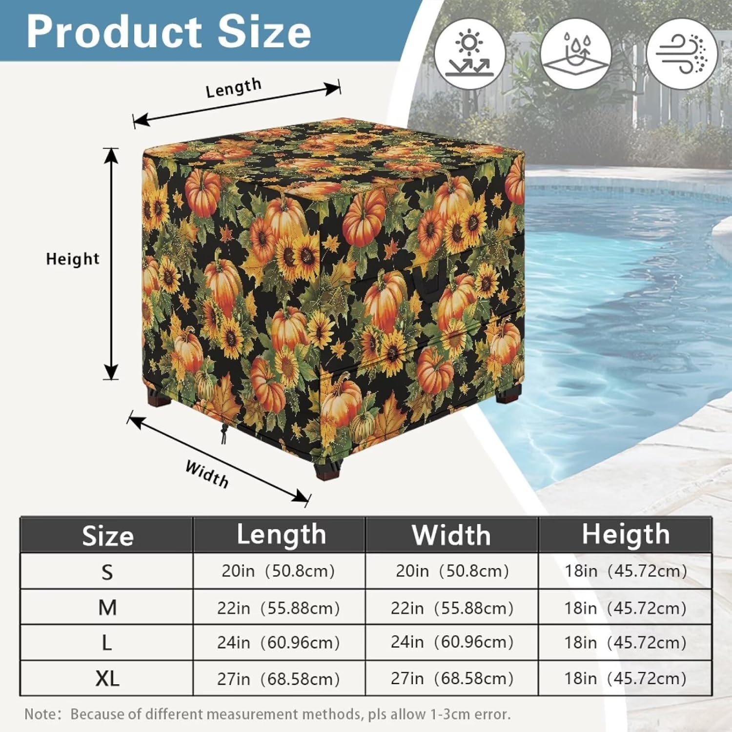 Available in four sizes from S to XL, suitable for a variety of stool types. Carefully measure before purchasing and refer to the size chart for easy selection. We recommend choosing a cover that is 1-2 inches larger than the stool size for a snug fit and better protection. Say goodbye to size mismatch issues and enjoy the perfect fit and gentle protection. Made from high-density polyester fiber fabric with a special wear-resistant surface treatment, it is durable and tear-resistant. The back is coated with a waterproof layer to effectively block rainwater while maintaining breathability. Whether under scorching sun or heavy rain, it quietly stands the test of time, providing long-lasting protection for your furniture. One cover for multiple uses, easily withstanding rain, sunlight, snow, strong winds, and dust. The three-dimensional cut design closely fits the chair body, with an elastic band at the bottom for slip resistance. Keep your outdoor furniture clean and new, eliminating the hassle of frequent maintenance. Easy to install and remove, the unique breathable hole design reduces internal moisture and prevents the cover from being blown away by the wind. Daily cleaning requires only a quick wipe with a damp cloth; stains come off effortlessly without the need for disassembly or washing. Save time for more enjoyable activities and savor the leisurely outdoor lifestyle. Multiple theme patterns are available, ranging from minimalist and fresh to trendy and personalized, catering to diverse aesthetic preferences. Whether for family gatherings or moments of solitude, it adds a touch of vibrancy to your balcony, making every moment of relaxation feel special. Let this balcony chair cover be the guardian of your outdoor furniture. From now on, enjoy every moment of being carefully cared for!
