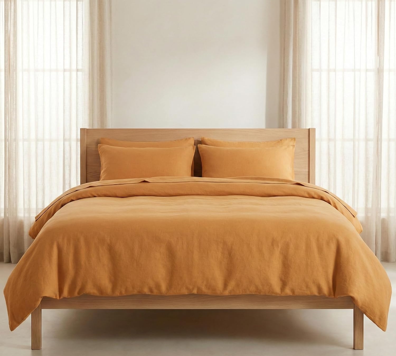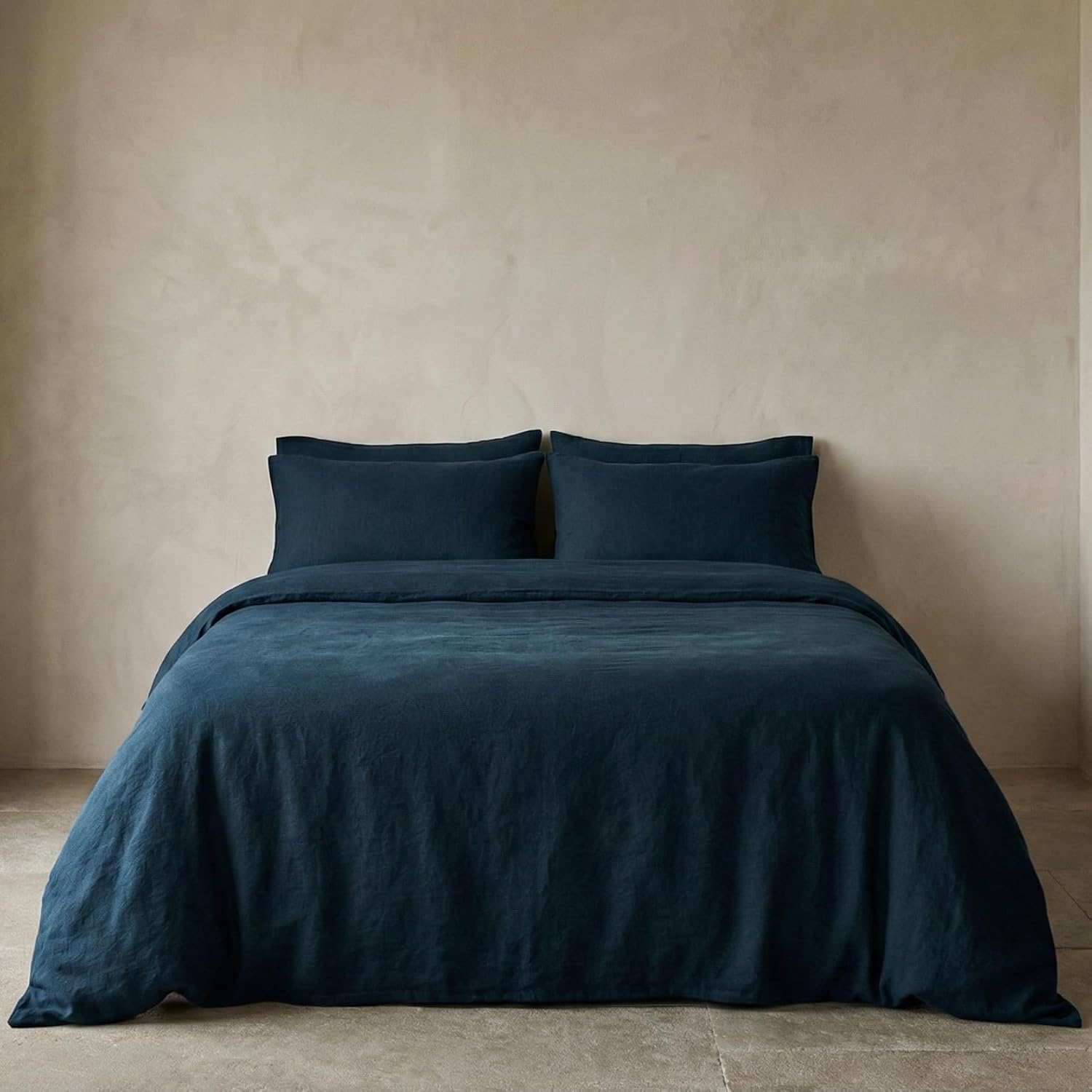 Features: OEKO-TEX STANDARD 100 certified Linen Cotton blend Hidden zipper closure 4 corner ties Pre-washed Naturally breathable, hypoallergenic, thermoregulating Handmade in India Duvet Cover Set Includes: Twin US : 1 Duvet Cover and 1 Standard Sham (20 x 26 inches) Full US & Queen US : 1 Duvet Cover and 2 Standard Shams (20 x 26 inches) King & California King US: 1 Duvet Cover and 2 King Shams (36 x 20 inches) Duvet Cover Size Guide: Twin US : 63W x 88L inches Full US : 78W x 88L inches Queen US : 88W x 90L inches King US : 102W x 90L inches California King US : 104W x 100L inches