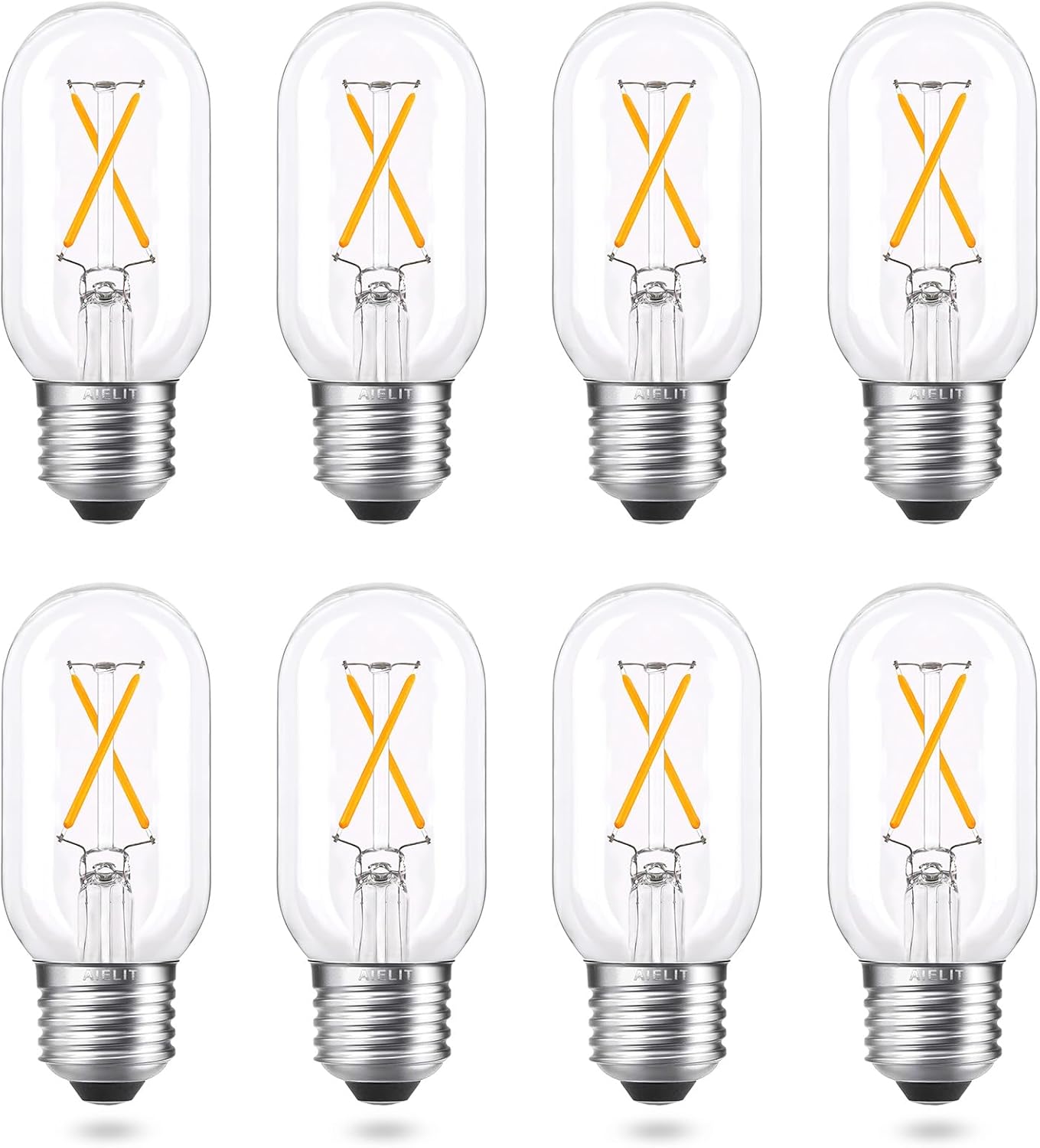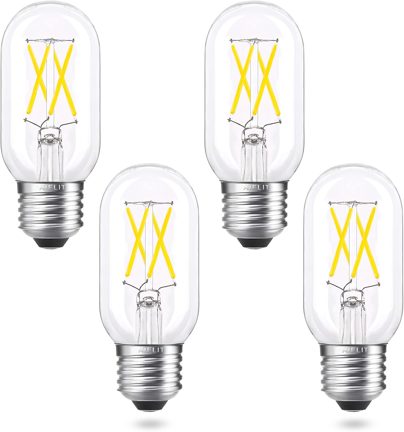 We are always looking for the Edison led light bulbs dimmable with flicker-free, especially those that seem to offer a better way of combining vintage elegance with the durability, versatility and functionality needed for chandeliers, wall sconces, pendant lighting or home decoration. This tube light bulb from AIELIT fits that bill. AIELIT T45/T14 LED Filament Tubular Bulb Dimmable: Smoothly from 0 to 100% Base: Screw E26 medium base Rated Power: 4W (40W equivalent) Brightness: 400 lm CRI (Color Rendering Index): 85+ Color Temperature: Soft white 3000K Lifespan: Average 25000 hours Input Voltage: AC 110V - 130V Multi-Application Adopted newest LED technology, no glare, no flicker, applied widely for ceiling fan, chandelier, wall scones, enclosed fixture, equivalent incandescent lamps, table/desk lamp, and decorative lighting, suitable for all small E12 screw base fixtures, perfect for hallway, porch, foyer, gazebo, patio, nightstand, kitchen, living room, dining room, bedroom, bathroom, cafe, bistro, hotel, schools, museum, supermarkets, restaurants, enjoying a good moment with the warm glow light. Easy to screw in. Note: Power off before install. Recommended Dimmers ListCompatible with LUTRON: S-600, S-600PR-WH, S-603PGH-WH, S-600H-WH, S-10PH, SCL-153P-WH, S-600P-WH, S-600-IV, S-603PH-WH, SCL-153PH-WH, DV-603PR, DVWCL-153PH-WH, DVW-600PH-WH, DV-603PH-WH, DV-600PH-WH, DVCL-253PH, DVCL-153P-WH, DVCL-153P-WH-3Compatible with LEVITON: 6631-LA, LIGHT ALMOND NO.6672, 603-6631-A, WHITE NO.IPL06, IPI06-1LZ, WHITE NO.6631Actually, AIELIT's dimmable light bulbs are suitable for 98% of dimmers on the market. What You Get AIELIT 8-Pack 4-Watt T45 dimmable LED filament bulbs, our worry-free 24-month warranty and friendly customer service. Note: Any quality issues or need guidance, pls email us. We will process and reply within 12 hours.