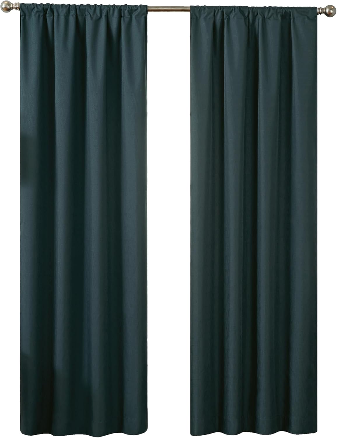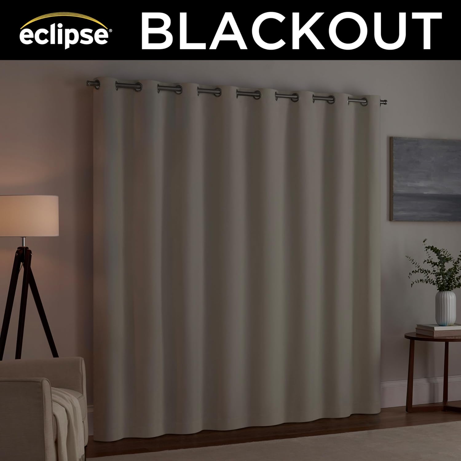 Experience the darkness, silence and beauty of Eclipse curtains. Eclipse blackout panels have been laboratory-tested to block out over 99% of intrusive light, unwanted noise and can help you save on home heating and cooling costs. Eclipse curtains offer a unique blend of fashion and function for any home decor. Transform your media room into the ultimate home theater experience or create ambiance in your dining area. National sleep foundation studies show that reduced light and noise are optimal for a better night’s sleep. Eclipse curtains are perfect for your living room, bedroom, kid’s room or nursery, providing the ideal sleep environment for the whole family. The magic is in the Thermaback construction, the innovative foam-backing is applied to the fabric and allows you to enjoy all the light-blocking, noise reducing and energy saving benefits, while providing the same fashionable style and elegance of naturally flowing curtains. Hang two or more curtain panels on a standard or decorative rod for optimal coverage and desired effect. Sold as a 2-pack rod-pocket panel set measuring 42" wide. Rod sold separately. 100% Polyester. Machine wash on a gentle cycle, tumble dry, do not bleach. Discover Eclipse Curtains, our comprehensive family of functional window treatments, provides privacy, manages light, reduces noise and helps with energy savings. Design the perfect room environment with solution-oriented curtains without compromising style.