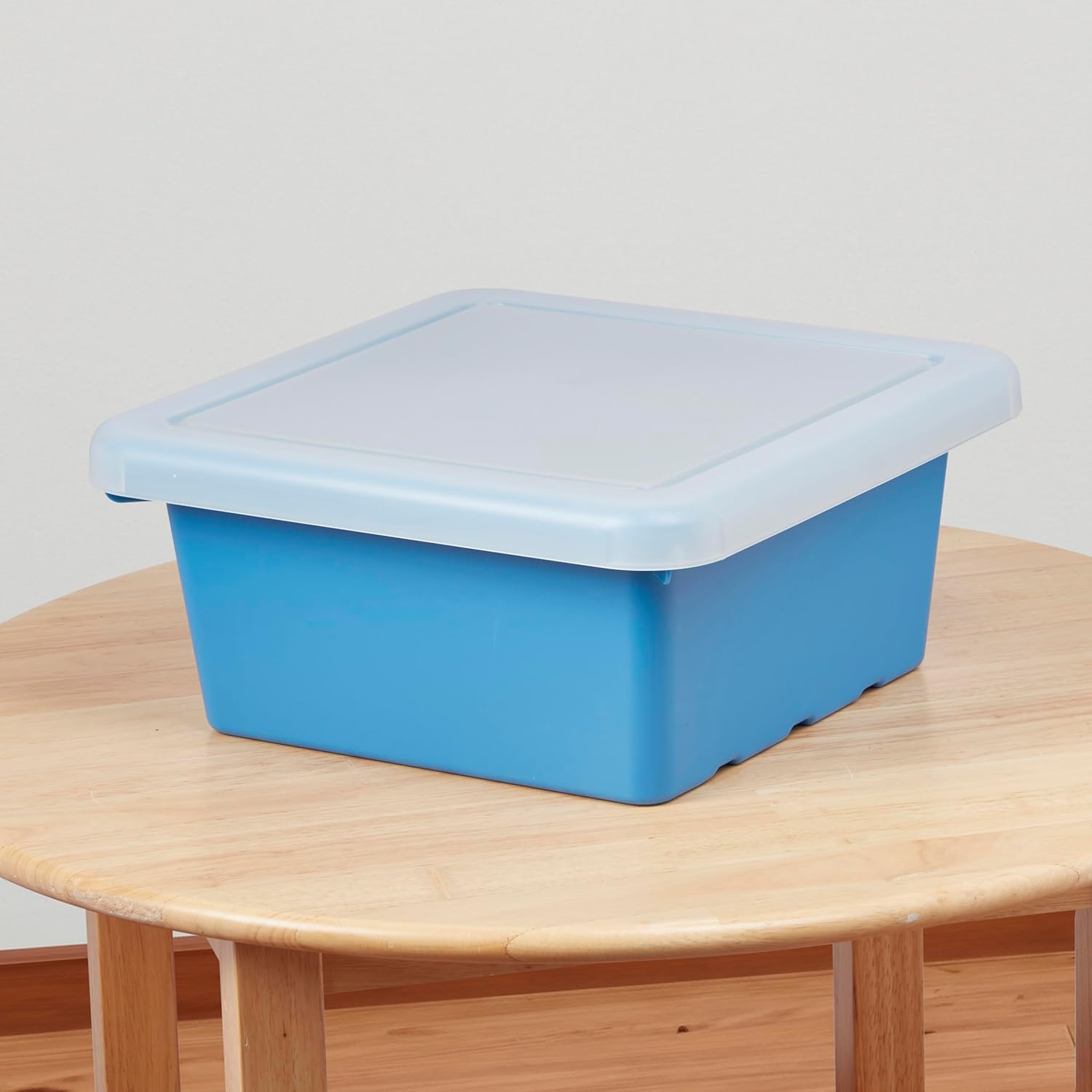 ECR4Kids Square Bins with Lids bring accessibility and ease to the classroom and home. The 4-pack of plastic containers with translucent lids is perfect for keeping classroom supplies, sensory toys, manipulatives, art supplies, kitchen and office items, books, and reading material contained and clutter-free. Create functional early educational and home spaces with storage bins organized by color or label. Store materials for learning centers or stations. The curved interior makes it easy to remove contents and non-snap lids are convenient for children and adults to access supplies. Introduce the concept of cooperative play to children by arranging bins indoors or outdoors. This setup encourages side-by-side play, fostering social interaction and teamwork among young participants. Bins provide a dedicated space for water play, kinetic sand, and various sensory materials. If used with the sensory table, bins snap into place and stay secure during tactile activities. Secure lids to keep contents protected. When learning time is over, educators and students can easily transport the bins with rounded edges. The bins with lids stack for vertical storage, or when empty, nest to save valuable classroom space. Use as replacement bins for ECR4Kids Sand and Water Tables, sold separately.