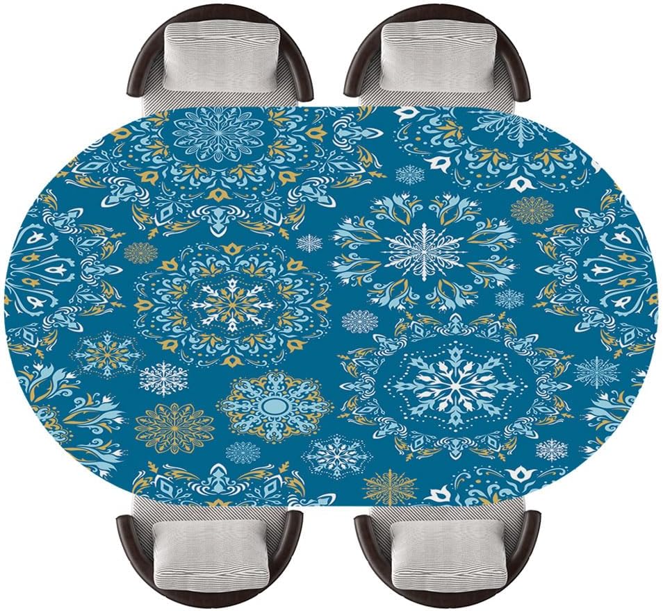 Elastic Edged Oval Table Cloths Seamless Christmas Snowflake Pattern Background Fitted Table Covers for Party Picnic Garden Decor, Fits 48"x68" Oval Tables, Style 173