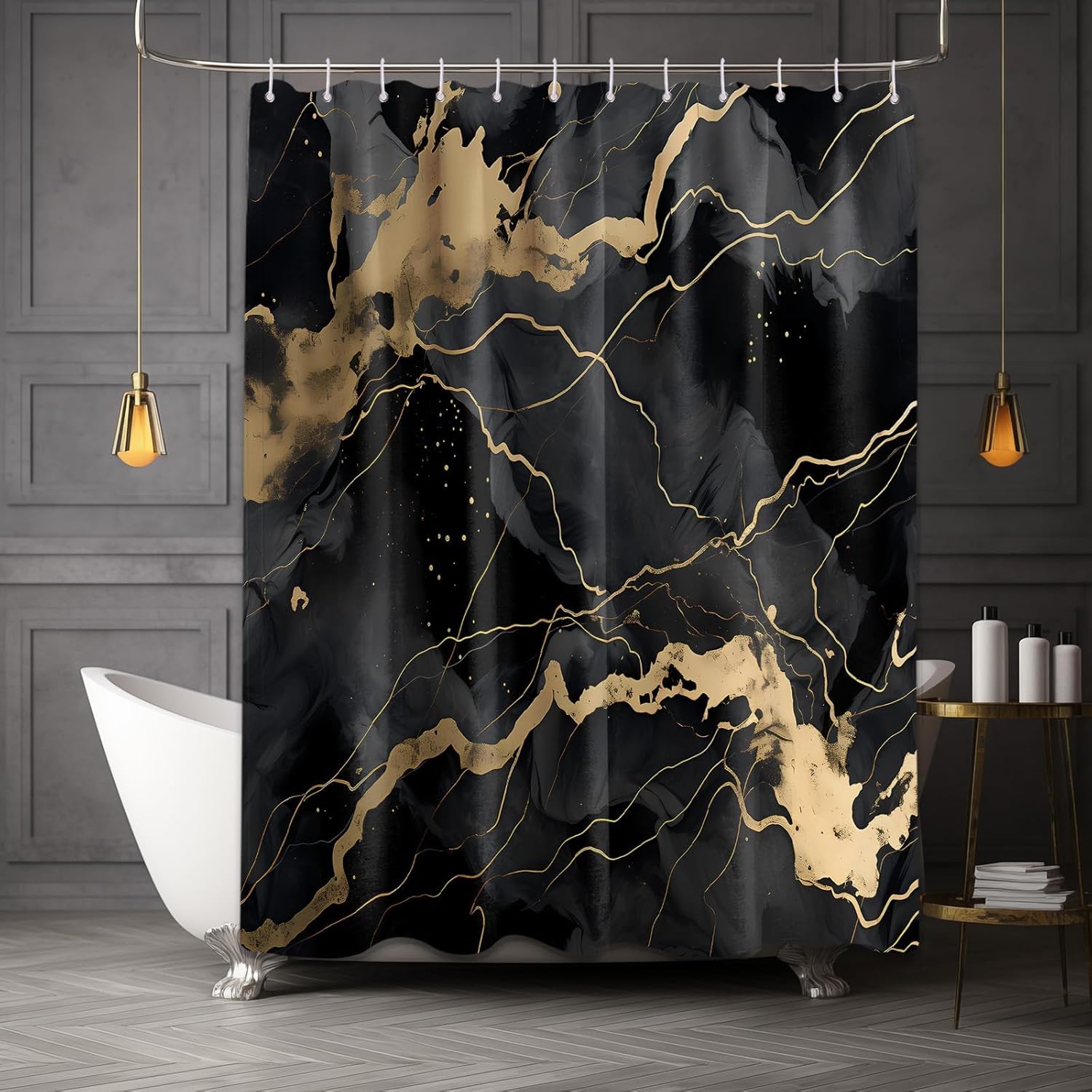 MATERIAL CHARACTERISTICS: Waterproof polyester fabric, non-PVC. Elephant shower curtains for bathroom does not require a plastic liner. The translucent shower curtain design ensures plenty of light while protecting privacy and, most importantly, can play a decorative role and not easily show dirt