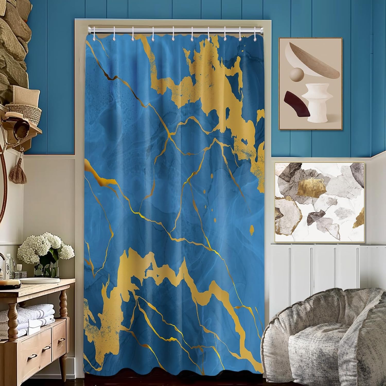 EASY TO INSTALL: The top of the peacock elephant bathroom set is equipped with a metal cable ring to prevent the tear of the hole, and 12 plastic hooks. Installing it is as easy as putting a loop on a shower pole