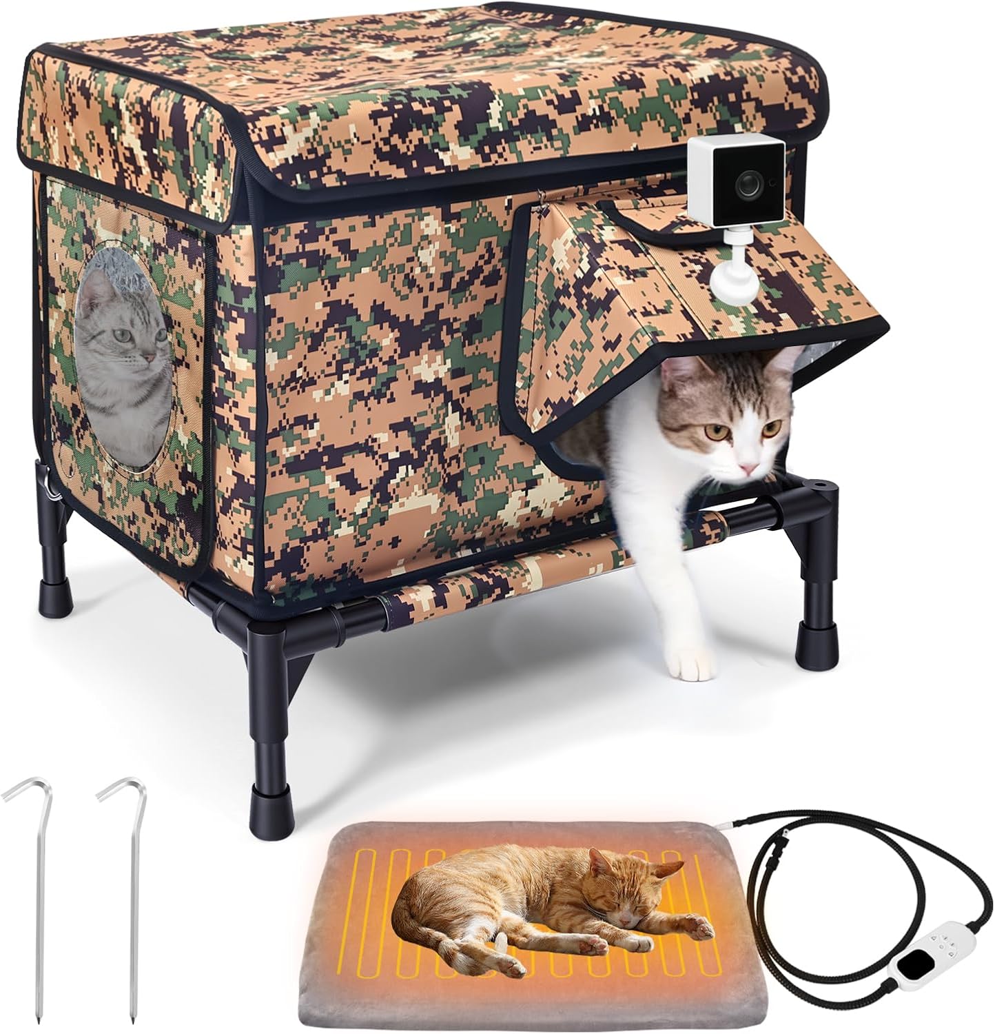 Warm & Insulated for Freezing Weather: Keep felines cozy in sub-zero temps with our heated cat house for outside—a versatile heated pet house! 5-layer aluminum foil insulation + UL-tested waterproof heating pad (43°F-118°F) locks in heat; chew-resistant cord for safety. Two sizes: L (25.6"×16.5"×18") for 2 cats/larger breeds; S (17"×13"×17.1") for 1 cat/small pets. Perfect for porches, yards, barns—reliable winter warmth!