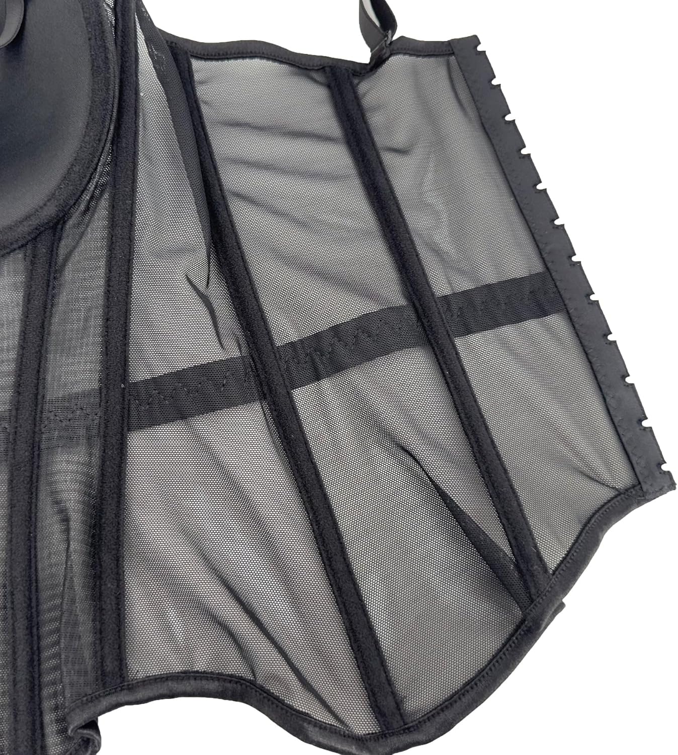What's it Like?Elevate your lingerie and fashion wardrobe with this black stunning mesh corset bustier top. Crafted with sheer mesh panels, it offers both breathability and irresistible charm. The built-in elastic waistband creates a slimming effect, gently shaping your waistline for a flattering silhouette. Removable and adjustable straps provide versatile styling—wear it strapless for a bold look, or keep the straps for added support.The back features a 12x4 hook-and-eye closure system, allowing you to customize the fit and enjoy lasting comfort throughout the day. With supportive underwire cups and structured boning, this corset not only enhances your bust but also contours your figure beautifully. Features of Tops:Padded cups provide coverage and support, no bra neededAdjustable, detachable straps allow strapless or multi-way stylingBest match with skirts, jeans, pants and jackets, can be worn in all four seasons.Sizing & Fit:X-Small: Bust 30–32 inch, Waist 24.5–26 inch, Length 13.4 inchSmall: Bust 32–34 inch, Waist 26–28 inch, Length 13.8 inchMedium: Bust 34–36 inch, Waist 28–30 inch, Length 14.2 inchLarge: Bust 35–37 inch, Waist 29–32 inch, Length 14.8 inchNote: All measurements are in inches. Please refer to the size chart for the best fit; sizes are for reference only and may vary slightly due to manual measurement. If you are between sizes, we recommend choosing the larger size for a more comfortable fit.
