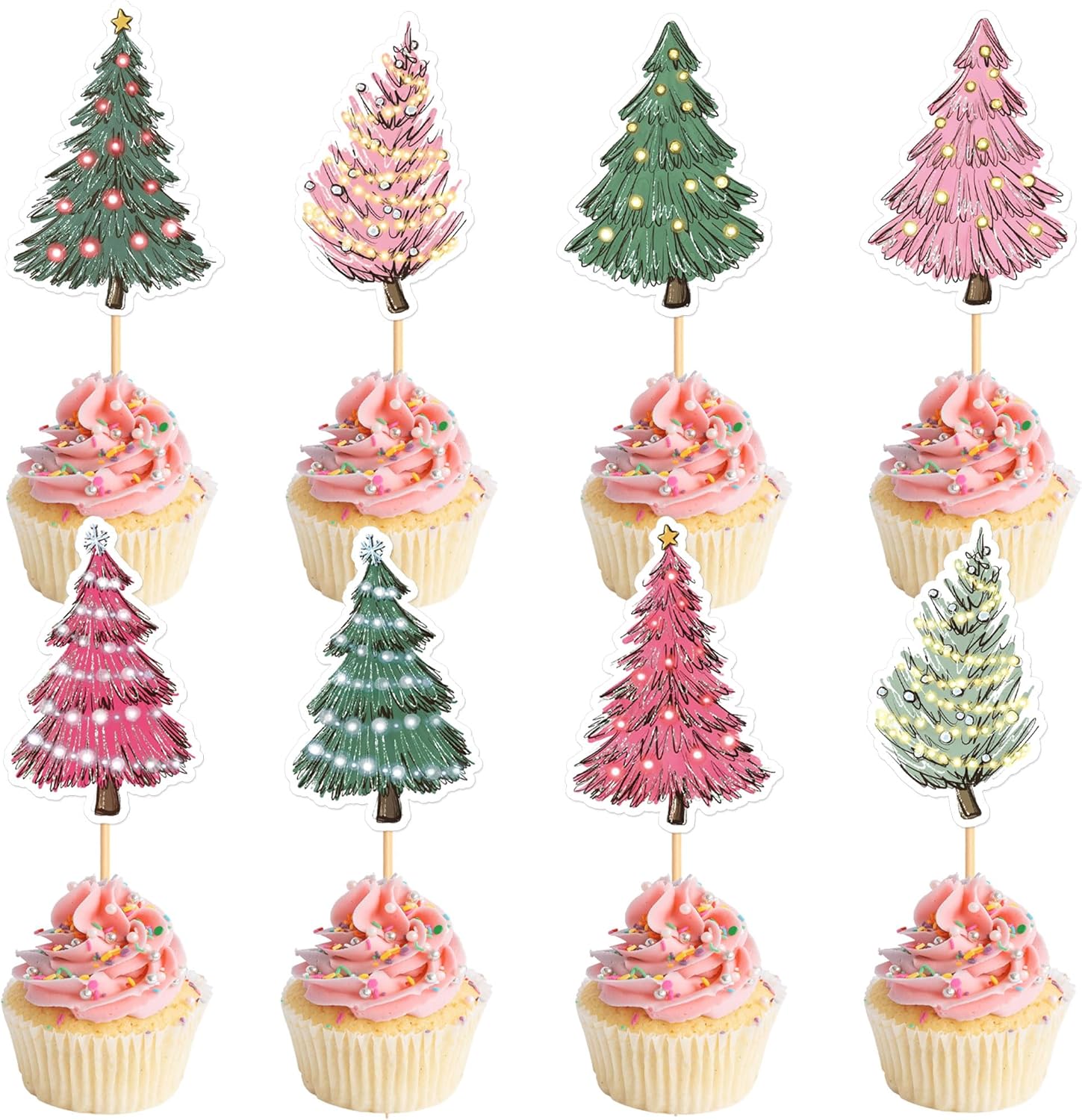 Ercadio 24 PCS Printed Floral Cross Cupcake Toppers Christian Baptism Cross Cupcake Picks for Religious Baby Shower Jesus Birthday He is Risen Easter Day Christmas Church Service Party Cake Supplies