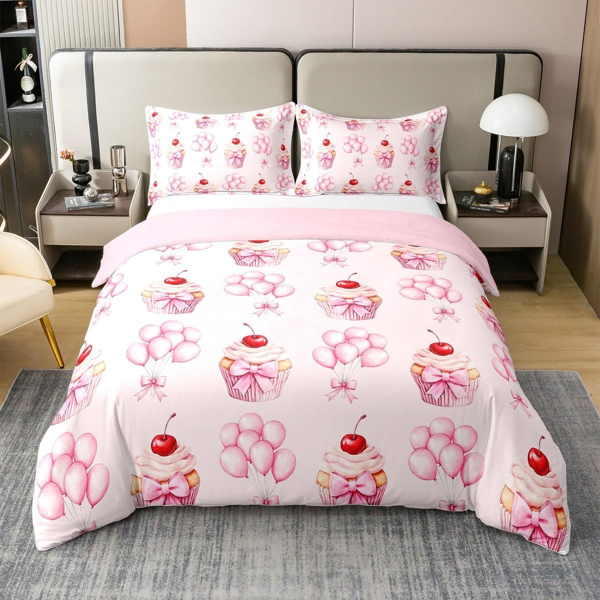 Erosebridal 100% Cotton Pink Bowknot Girls Comforter Cover Full,Girly Dreamy Glitter Sequins Print Bedding Set,Stylish Glamorous Romantic Quilt Cover,Reversible