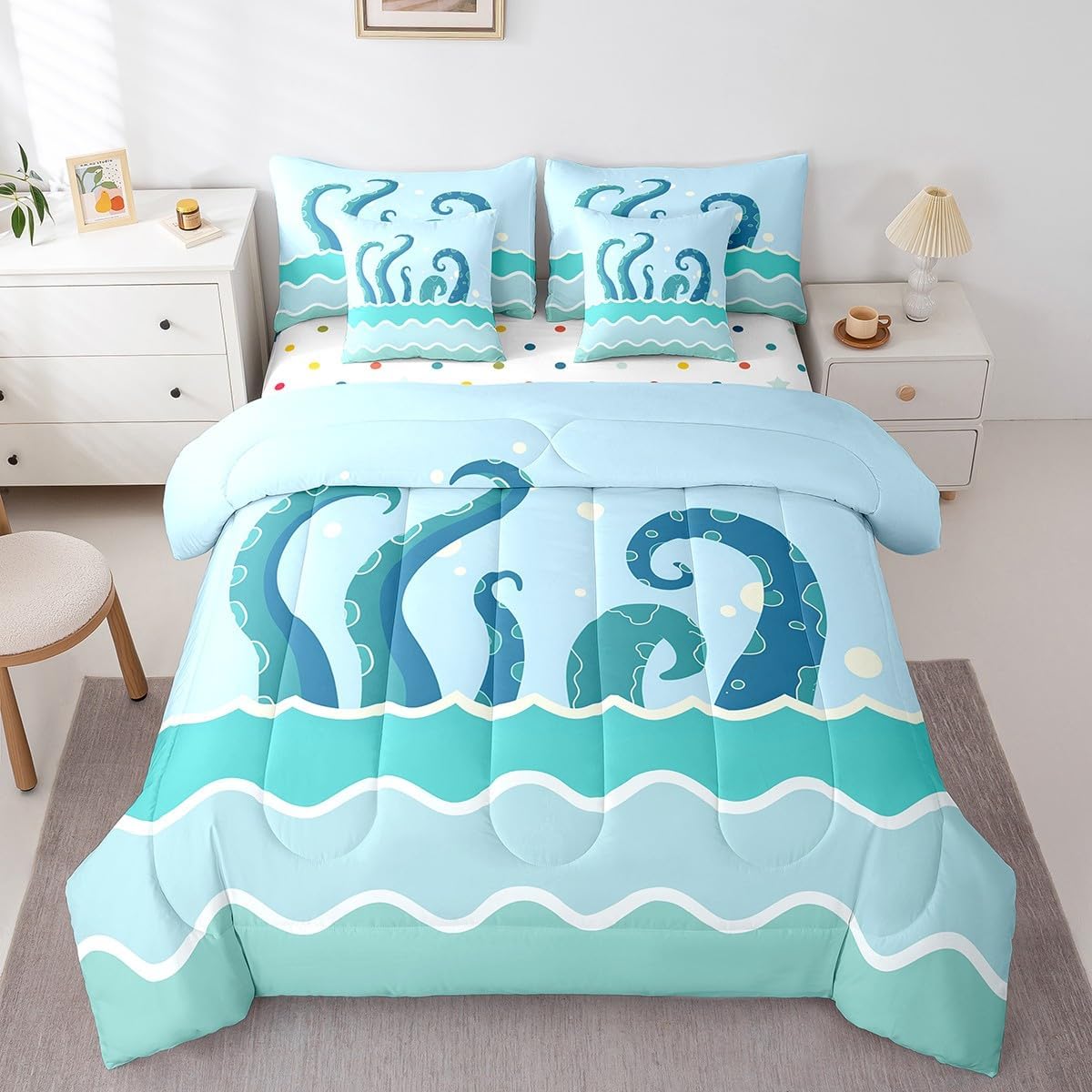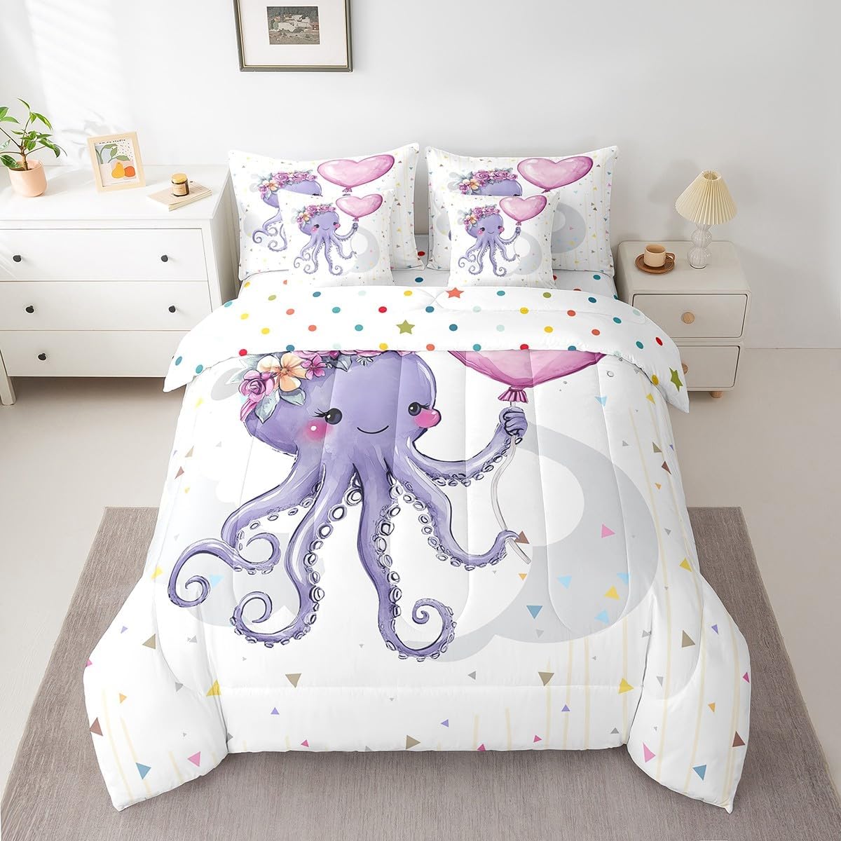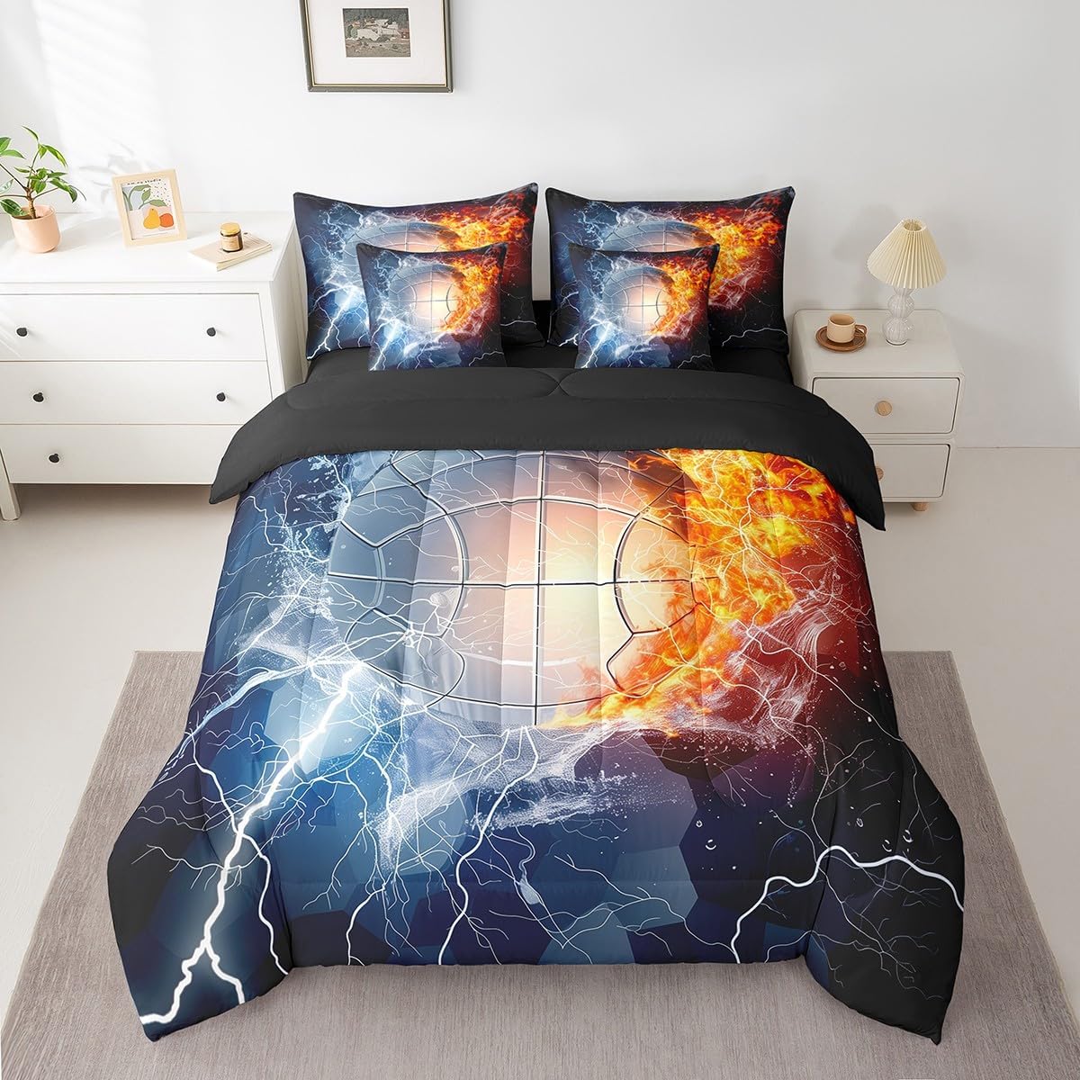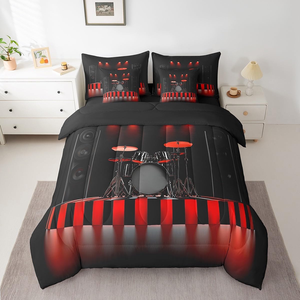 Welcome to Home Store We have specialized in home textile for many years,We sincerely hope that our products can give your room a brand new look Size Information Twin size : 1 Comforter 68"x90", 1x Fitted Sheet 39"x75"x16",1x Flat Sheet 96"x66", 2x Pillowcase 20"x30" and 2 Pillow Cover 18"x18" Full size : 1 Comforter: 79"x90", 1x Fitted Sheet 54"x75"x16",1x Flat Sheet 96"x66", 2x Pillowcase 20"x30" and 2 Pillow Cover 18"x18" Queen size : 1 Comforter: 90"x90", 1x Fitted Sheet 60''x80''x16",1x Flat Sheet 102''x90", 2x Pillowcase 20''x30'' and 2 Pillow Cover 18"x18" King size : 1 Comforter: 104"x90", 1x Fitted Sheet 78''x80''x16",1x Flat Sheet 106''x90", 2x Pillowcase 20''x35'' and 2 Pillow Cover 18"x18" Feature : We have products with different element patterns,which can easily decorate the theme room you want Our bedding is Soft and lightweight,but it can keep you warm for all season Our Comforter Pattern Printing are very definition Occasion and Presents our bedding set is not only great for your Bedroom or Guest Room,but also good for your Rv Bunks,it's also a great Present for your kids,families,friends,boyfriend,girlfriend,husband and wife Personalized As a manufacturer of digital printed home textiles, we follow current trends,Some of our products : Duvet cover,Comforter Set, Sheet Set,Blanket,Window Curtains,Shower Curtains,can be customized with names or Something you want to say to someone Our Wish We sincerely hope you'll love our bed set