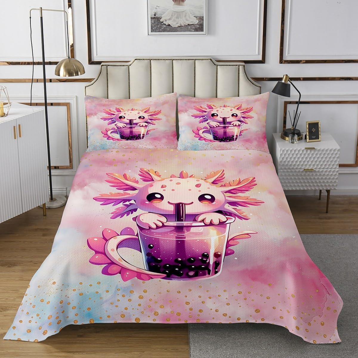 Size information: Twin size include 1 quilted bedspread(68"Wx90"L) and 2 quilted pillow shams(30"Wx20"L) Queen size include 1 quilted bedspread(90"Wx90"L) and 2 quilted pillow shams(30"Wx20"L) King size include 1 quilted bedspread(104"Wx90"L) and 2 quilted pillow shams(36"Wx20"L) Makeover your bedrooms all season with this bedspread set: A quilt set for home dorm room decor for kids teen girls boys youth.practical to use for being polyester,feels like cotton which is soft and breathable Vivid colors won't fade thanks to new 3d digital printing methods.these novelty designs coverlet set match well with various color palettes of your other home decorations Expertly crafted with digital printing technology, these home textiles feature the trends in contemporary home fashion. Either to your friend or to yourself,the item is funny and interesting Please note: The bedspread and pillow shams are printed on the front side only,the back of bed set bedding set are white colored.comforter is not included in the set