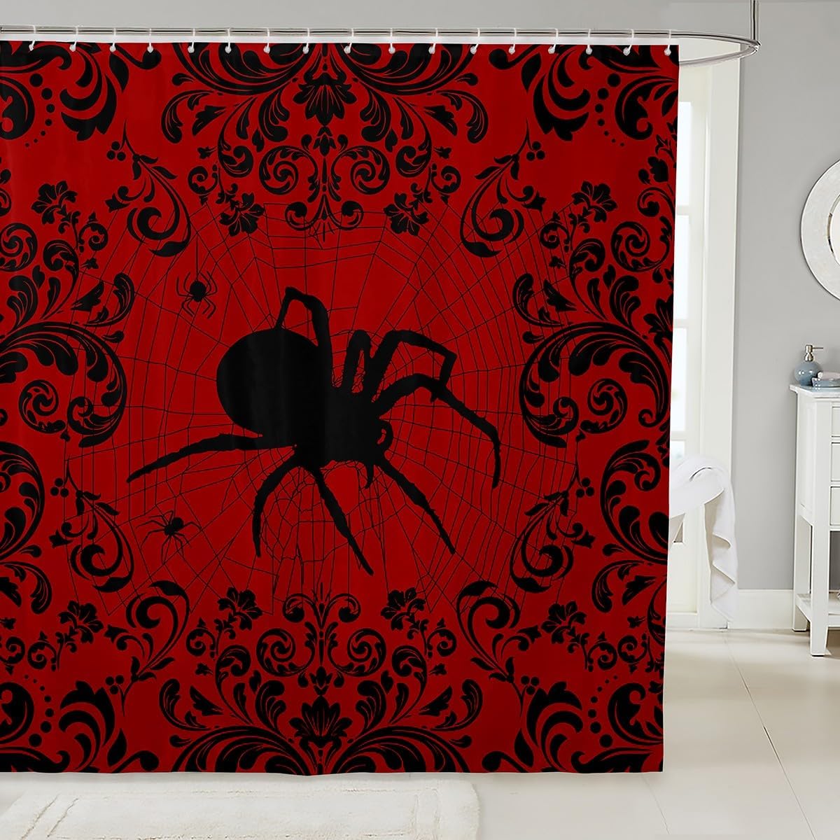 Erosebridal Halloween Moth Pattern Bathroom Accessories Purple Black Gothic Shower Curtain Goth Boho Damask Floral Bathroom Curtain for Kids Adults 72" Wx72 L Halloween Animal Print Shower Decor