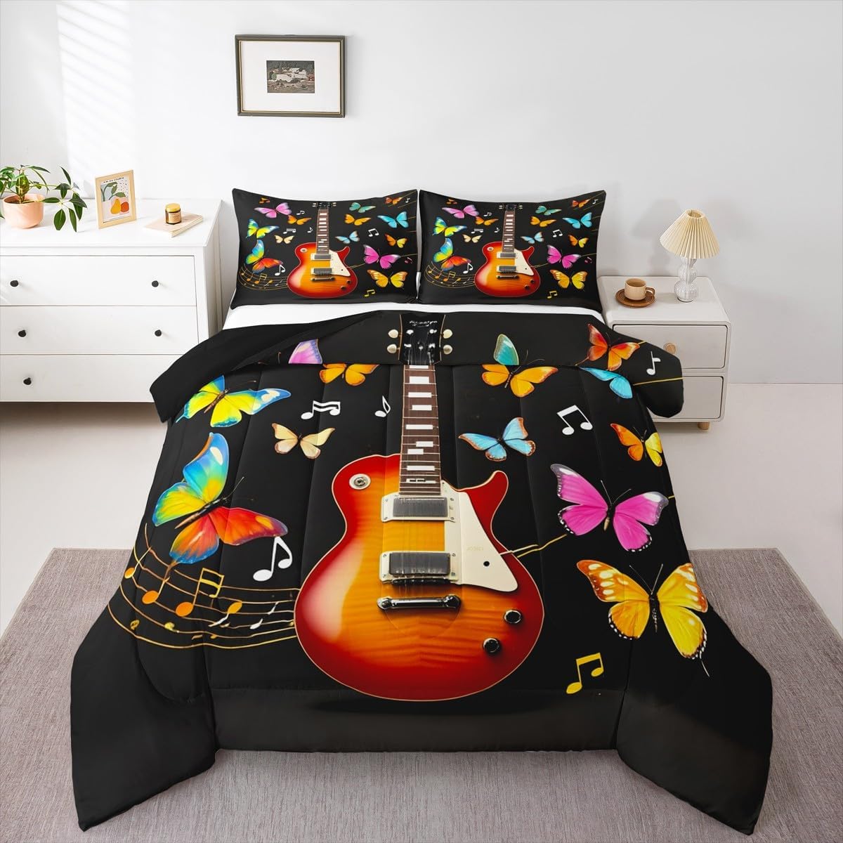 Welcome to our store. We have specialized in home textile for many years. We are committed to providing customers with comfortable products. Size Information Twin size: 1 Down Comforter (68"W x 90"L) and 1 Quilted Pillowcase (30"W x 20"L). Full size: 1 Down Comforter (79"W x 90"L) and 2 Quilted Pillowcases (30"W x 20"L). Queen size: 1 Down Comforter (90"W x 90"L) and 2 Quilted Pillowcases (30"W x 20"L). King size: 1 Down Comforter (104"W x 90"L) and 2 Quilted Pillowcases (36"W x 20"L). Versatility We have many kinds of styles for you to choose. You can easily find a product that suits the style of your room. The item is not only fits your home (bedroom, guest room, living room, etc) or RV, but also a present for holidays or anniversaries (Christmas, New Year, Halloween, Thanksgiving day, birthday, etc) for people who you love (your families, friends, relatives, boyfriend,girlfriend). Modern Design The luxury aesthetic comforter set is made by reactive printing and dyeing process. The pattern is clear, the color is lasting and bright, which will not fade after repeated washing. No harmful chemicals or dye substance. Personalized As a manufacturer of digital printed home textiles, we follow current trends and bring you the latest and stylish home textile products. The item will make the room decorated in exquisite taste. We sincerely hope you'll love the bed set.