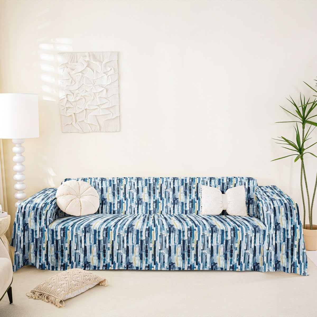 Sofa Cover Style and Protection for Your Home The couch cover combines comfort, style, and practicality. Made from soft plush Microfiber fabric and featuring modern 3D digital prints, it refreshes living spaces while providing reliable furniture protection. Multiple Size Options Several sizes are available to ensure a proper fit for most sofas, loveseats, and sectional couches. Refer to the size chart and measure furniture before ordering.71"x91",71"x102" for single or small loveseat; 71"x 118 ", 91"x 118 "for loveseat or small 3 seat sofa; 71 "x 134", 91"x 134"for 3 seat or small 4 seat sofa; 71 "x 150", 91"x 150"for oversized sofa. Product Features Soft Plush Material and 3D Designs.The short plush fabric offers a soft and durable surface. 3D digital printing technology provides a range of themed patterns, adding a vibrant and personalized touch to any room. Scratch and Spill Protection Ideal for homes with pets and children, this cover helps shield sofas from scratches, spills, dust, and everyday wear. It serves as a functional yet stylish layer that preserves furniture condition. Full Coverage and Non Slip Design Designed to cover the entire sofa, including the back, seat, and arms, this drape-style cover installs quickly. The non slip backing helps keep it securely in place during use. Application For indoor sofas, outdoor camping, picnics, beach trips, or as a bed blanket. Easy Maintenance Machine washable at low temperatures, the cover resists shrinking and fading. For best results, wash gently, avoid bleach and ironing, and allow it to air dry. Note Slight color differences may occur between production lots.