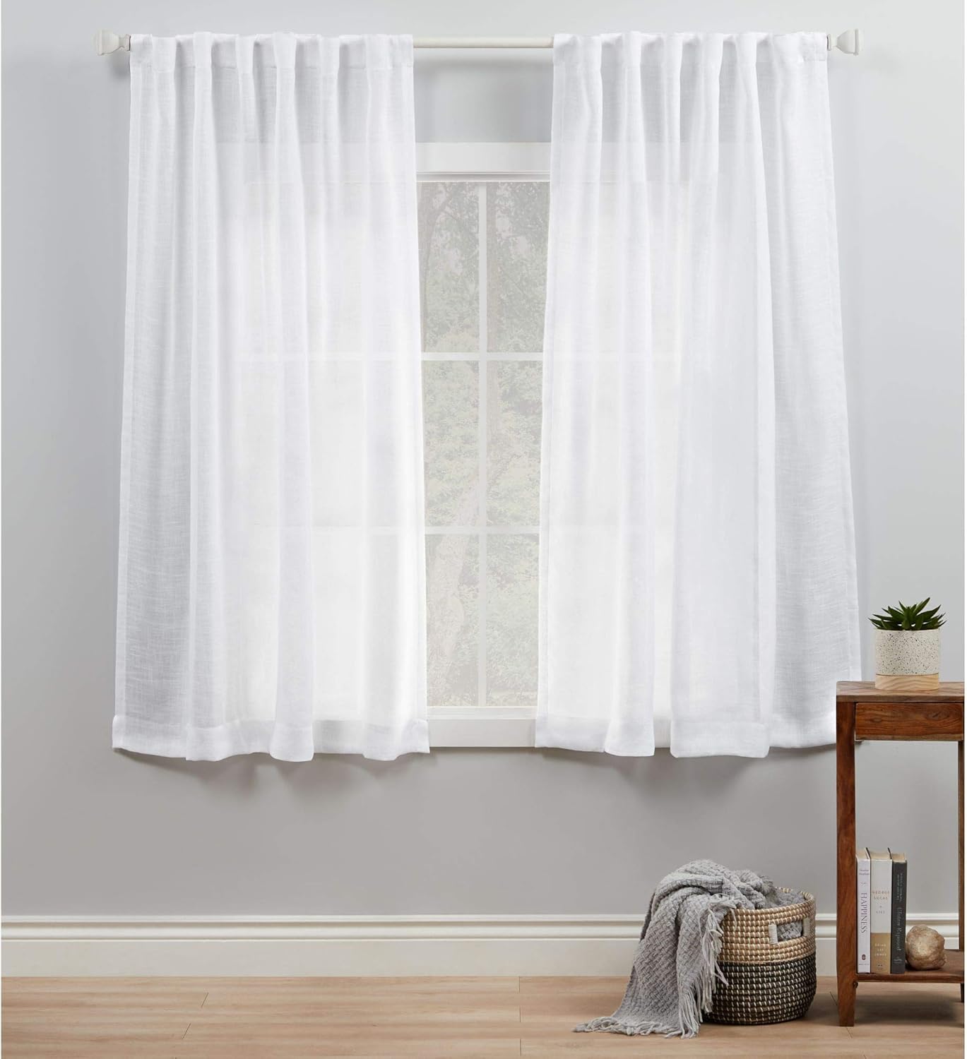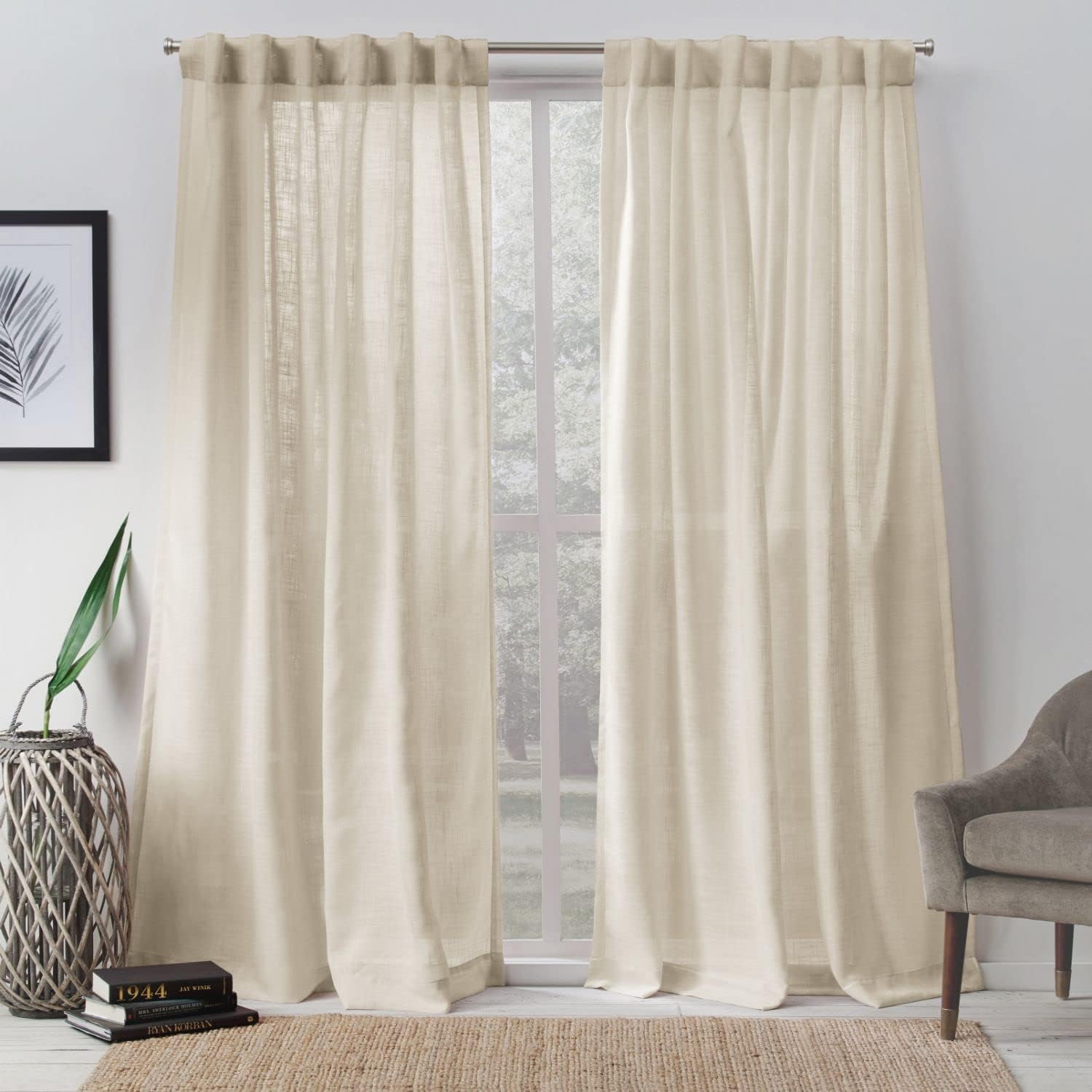 Product Description The Exclusive Home Bella curtain panels have a textured linen look and a sheer opacity, and are designed to bring a light and airy elegance to any room. Hang them alone or layer them with heavier, room darkening drapes for a variety of looks. Hang these drapes three ways: (1) Using a curtain rod in the rod pocket; (2) using the hidden tabs; or (3) using curtain clips (sold separately). For proper fit and fullness, your curtains should measure 2-3 times the width of your window. From the Manufacturer Exclusive Home is North America's leading supplier of home textiles, ready-made drapery, and window curtain hardware. We provide superbly crafted products that are affordable, yet luxurious, and are unsurpassed in quality and construction. Our window treatments are designed with timeless beauty in mind. We deliver high fashion designs and patterns, varying textures and fabrics, as well as a myriad of colors that today's discerning consumers expects. Exclusive Home window treatments are available in an array of fabric constructions including jacquard, linen, burlap, sheer, thermal/blackout, silk, faux silk, polyester, poly blends, cotton, and cotton blends. These fabric constructions are offered in varying designs and colors including classic solids, prints, textures, thickness, lengths, widths, and burnouts. Our window hardware is designed for that perfect finishing touch. You will find our window decor designs to be contemporary styles blended with timeless beauty to add a sophisticated feel to any room. Constructed from durable iron metal with various color finishes, our window hardware is sure to last a lifetime. From classic to contemporary designs and today's top fashion trends, you are sure to find that Exclusive Home textiles, drapery and window hardware will fit any look, mood, or style. Like millions of customers already have, let our designs be the anchor for each room in your home!