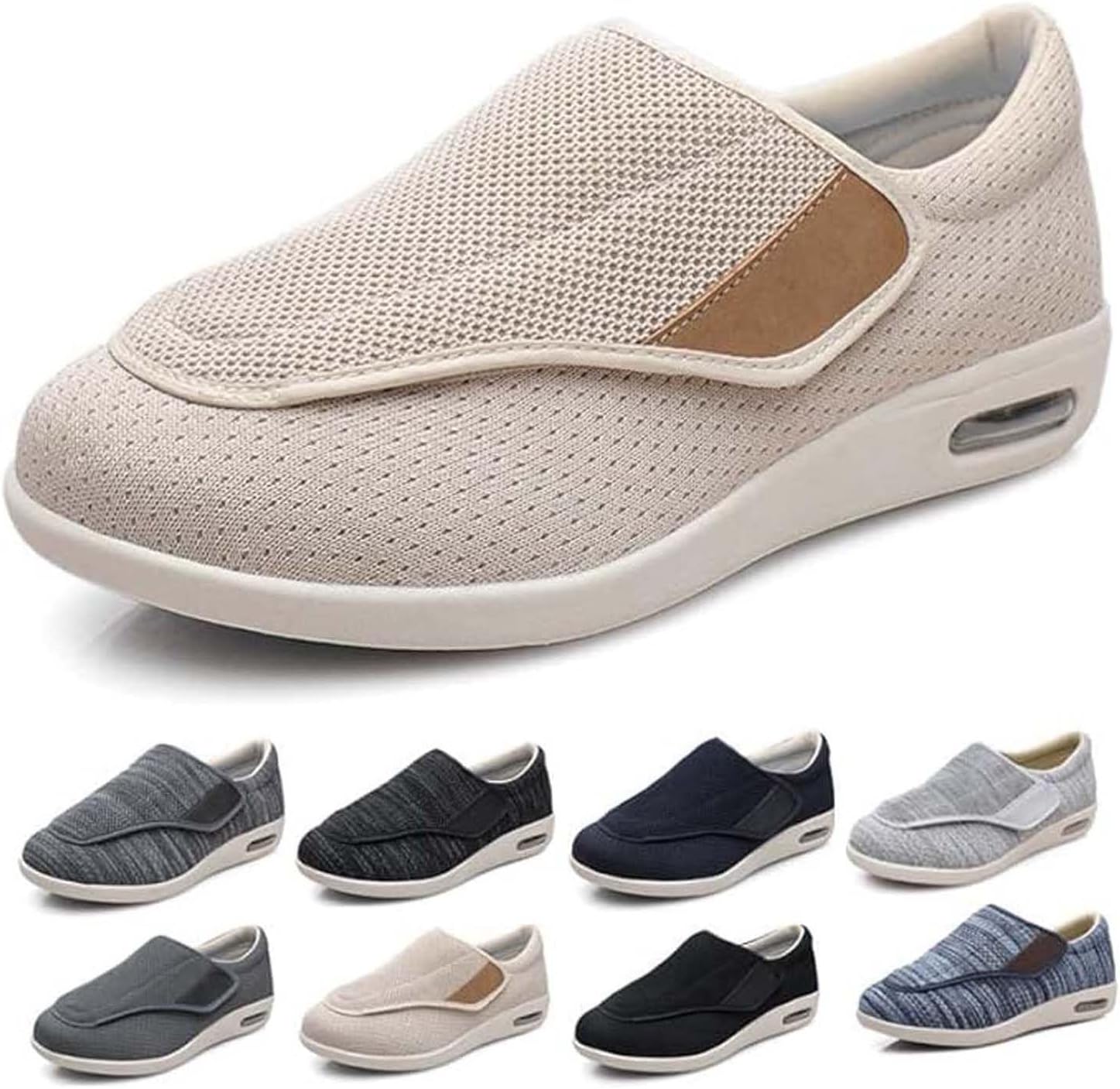 Our diabetic edema shoes are specifically designed to provide relief and comfort for individuals dealing with foot pain, swelling, and conditions such as diabetes, arthritis, edema, hypertension, and plantar fasciitis. Ideal for middle-aged and elderly individuals, these shoes offer a perfect combination of lightweight design, breathability, and support, making them suitable for daily wear. Key Features: Wide Fit and Extra Depth for Comfort Designed with a wider width and double-depth structure, these shoes are easy to slip on and off. The lightweight, breathable materials offer enhanced support, ensuring a comfortable fit throughout the day. Breathable Upper for Fresh Feet The upper is made from advanced breathable fabric, allowing air circulation to keep your feet cool and dry. The wide buckle design ensures a comfortable and easy fit, eliminating the hassle of laces and making them perfect for quick wear. Non-Slip, Stable Sole The shoes feature a specially designed non-slip sole that increases friction with the ground, offering extra stability and ensuring a smooth walking experience. Care Instructions: To maintain optimal comfort, hand wash the shoes. Machine washing may distort the shape and affect the fit. For those with wider feet, we recommend selecting one size larger than your usual shoe size for a more comfortable fit.