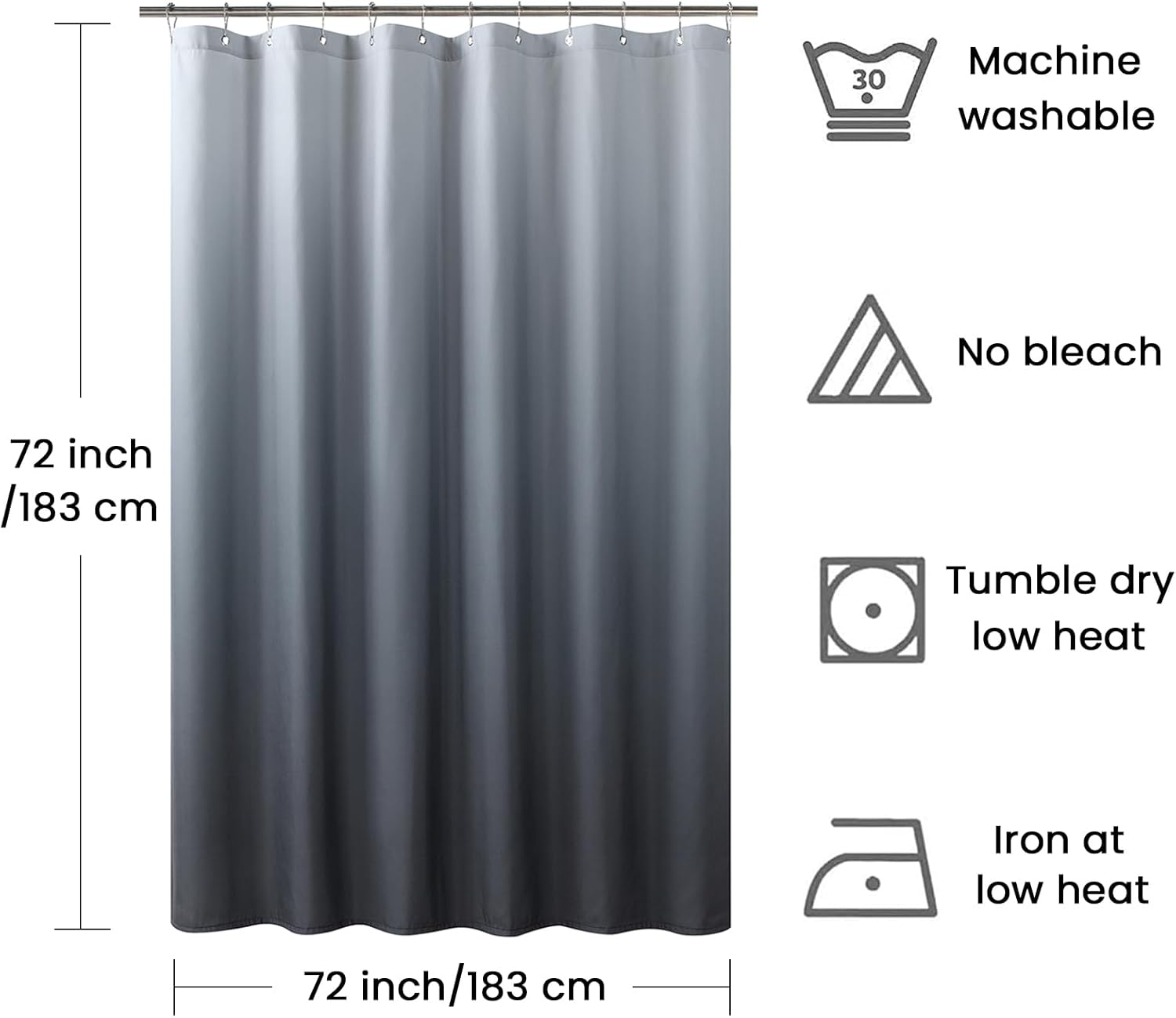 ☆Product Description ☆ - 72” Width x 72” Height inches - 100% Premium Polyester Fabric - Metal Grommets - Waterproof - Washable - Eco-friendly;☆Easy to Clean and Maintain ☆ - Machine washable - Wash cold by gentle cycle - Do not bleach - Tumble dry;☆Guarantee to Keep You Safe ☆ - We assure you that our shower curtains are made from the best quality materials. If you have any questions after receipt, please contact us immediately, and we will solve your problems in time.
