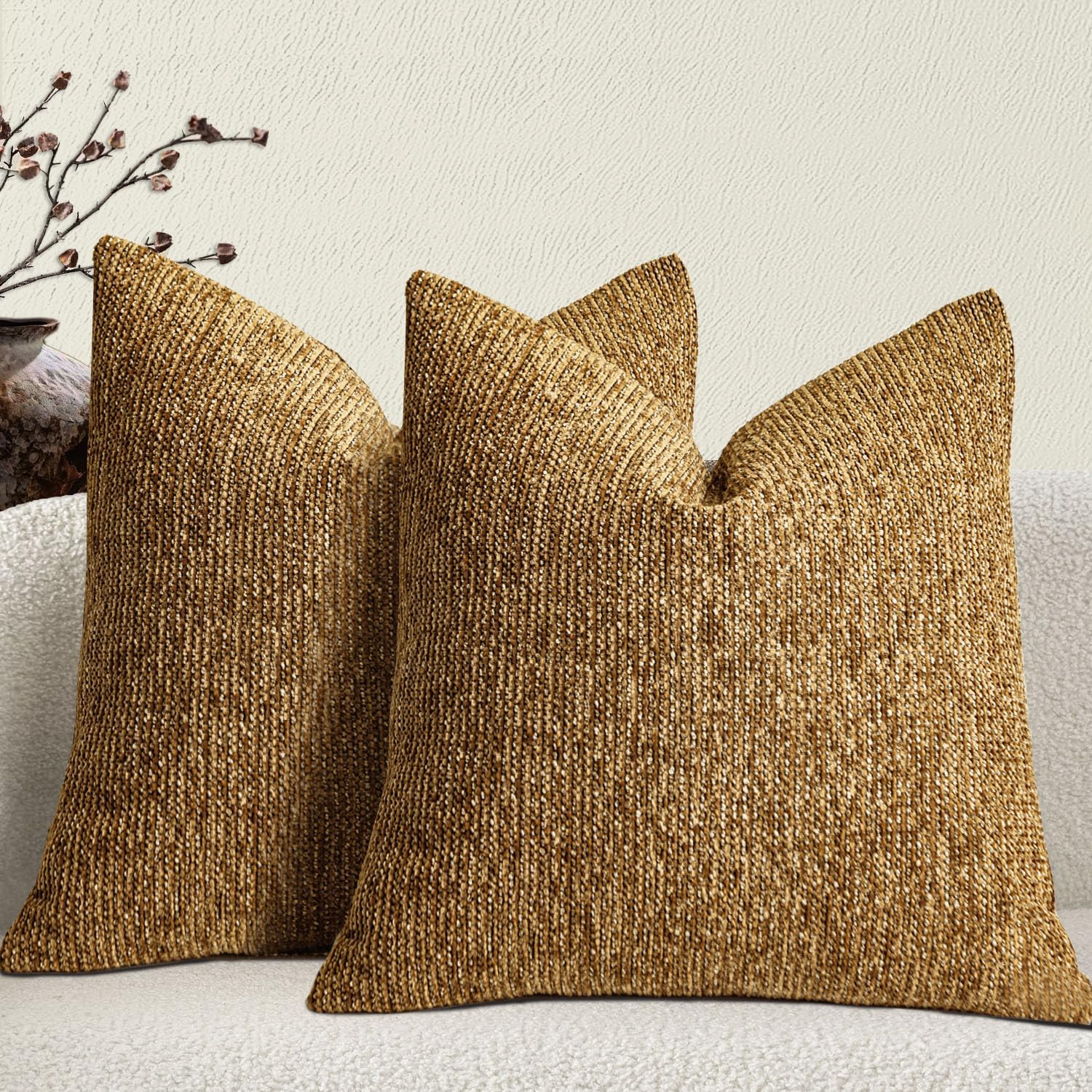 Fall Chenille Couch Decorative Throw Pillow Covers 20 x 20 in Set of 2 - Fabric Textured Retro Farmhouse Style Accent Cushion Case Square Pillowcase for Sofa, Couch, Living Room, Burnt Orange