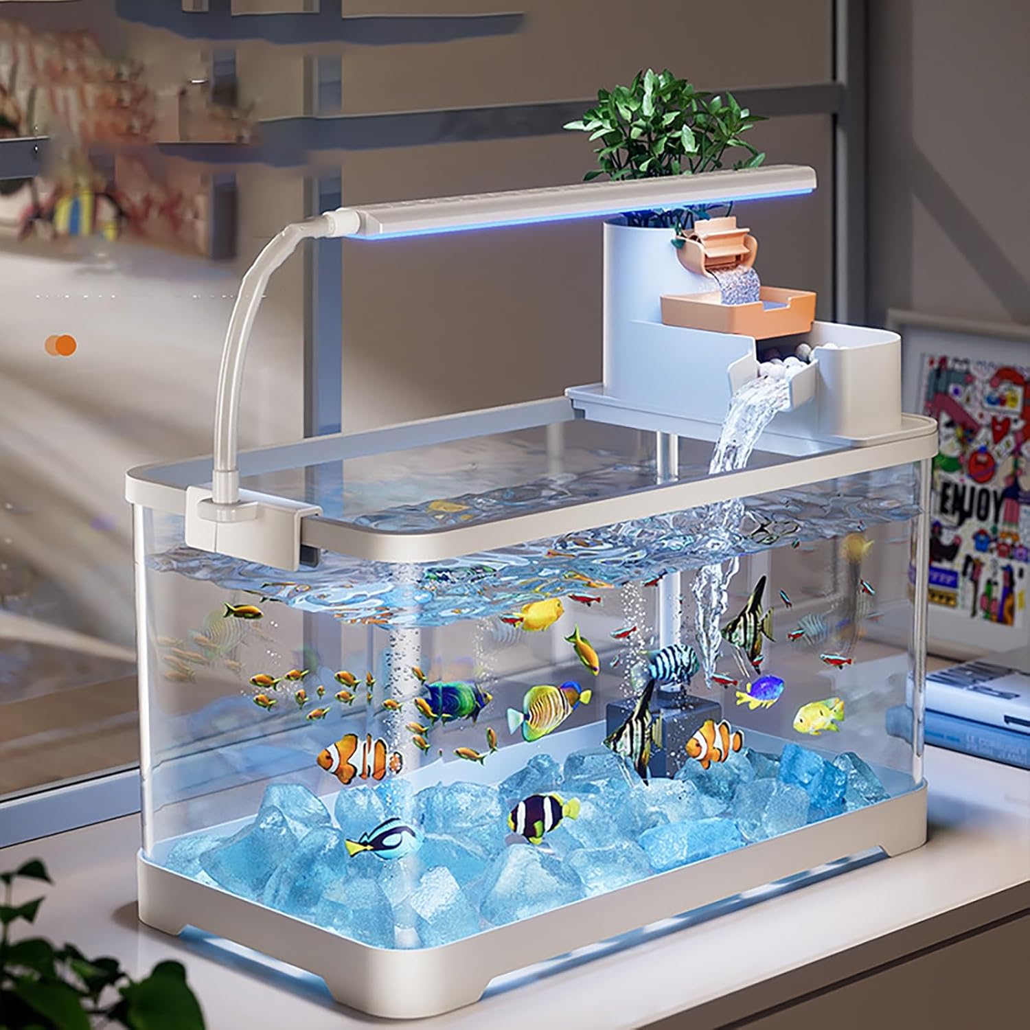 Landscaping Aquarium for Home Office DecarativeBring your aquatic animals like Betta fish turtles, tortoises, frogs, and terrapins into a serene environment with our Aquarium Starter Kits. Designed with a frameless structure, these tanks offer a clear sight of underwater life. The dependable filtering system maintains water quality without noise interference. Decorative features provide a lifelike setting, blending functionality with style.Fish tank is made of high-quality acrylic material, transparent and high-definition, so you can clearly see the fish moving freely.Size:S:30.6x18.4x19.6cmM:38.8x21.5x21.2cmL:49.5x21.5x21.2cmXL:55x30x29.4cmWater pump: adsorbable; USB socket Water grass lamp: USB socketFeatures: quiet and not noisy; high light transmittance; one-piece moldingSpecification:Product name: Aquarium Starter KitsProduct material: ASProduct color: Black,white