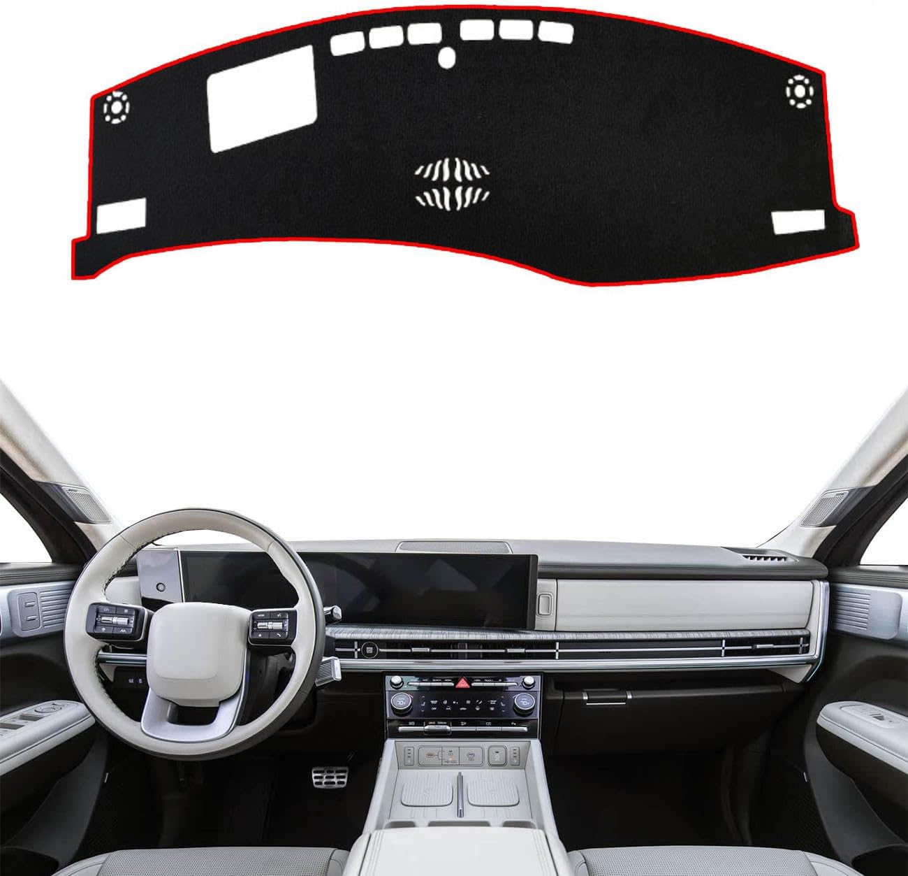 Product name:dashboard protector cover pad Product Features:Anti-Glare,Non-Slip, Heatproof,sunshade and durable, perfectly matchedProduct Material:polyester fiberProduct color:black,black with red borderProduct weight:about 0.3kgHereby:The installation can be completed in a few secondsNon slip silicone, paste free and nondestructive installationSunscreen and heat insulation to protect the car center consoleThe material is exposed to the sun without peculiar smellEffectively prevent the glare of the car center console,keep clear vision