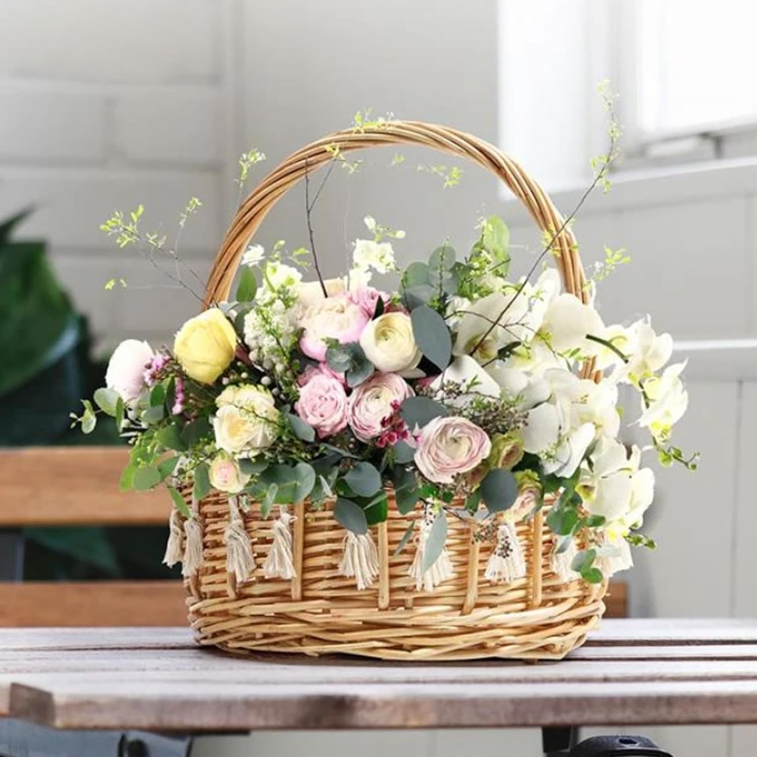 Description: Make your special day even more charming with these lovely Flower Girl Baskets! This set includes 2 woven wicker baskets, perfect for holding flowers, petals, or other small items at your wedding or Easter celebration. Each basket features tassels and a sturdy handle for easy carrying. Not just for weddings, these baskets can also be used as decorative pieces in your garden or home. The high-quality material ensures durability and long-lasting use. Give your flower girl a delightful accessory and add an elegant touch to your event with these charming Flower Girl Baskets. Features:. Flower Girl Baskets. -Color: light brown. -Material: Rattan. -Size: about 20 cm/7.87 inch.diameter, height: 25 cm/9.84 inch. Note: Manual measurement, please allow slight errors on size. The colors may exist slight difference due to different screens. Package Including 2 * flower girl baskets
