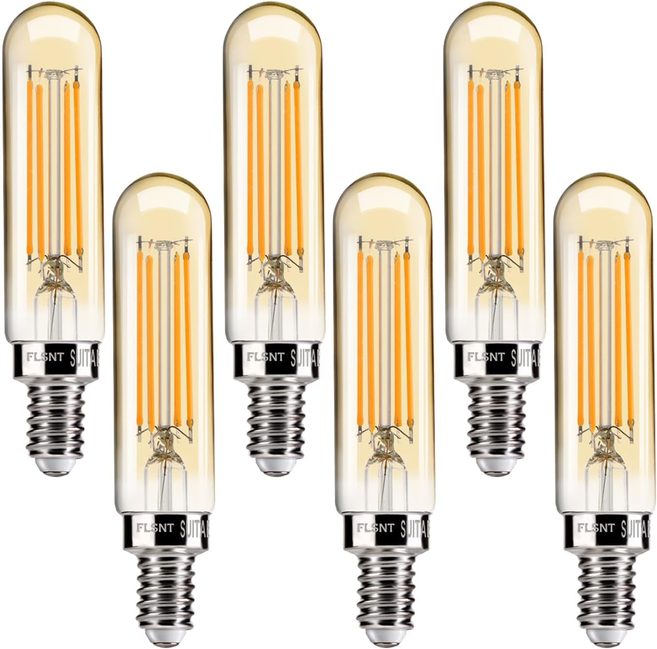 FLSNT Dimmable T6/T25 Edison LED Bulbs 60W Equivalent E12 Candelabra Base 2700K Soft White 500LM 5.5W Decorative Edison Bulb for Chandelier Vanity Ceiling Fan Lighting, CRI82, 12 Pack