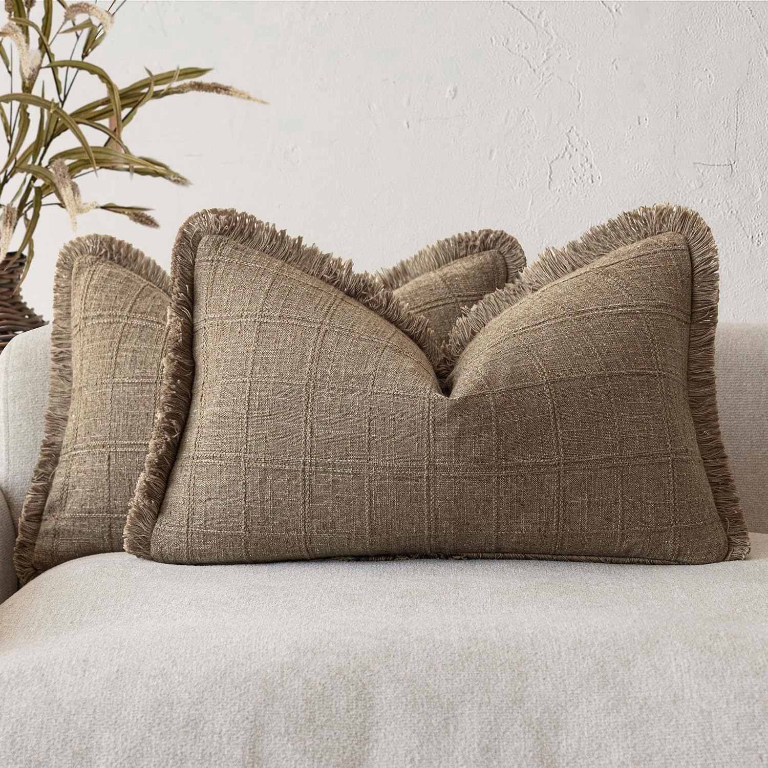 Choose A Linen Check Fringe Cushion Cover Perfect for decorating your room in a simple way. Suitable for sofa,living room,bed room,couch,bed,car,seat,floor,bench,office,cafe,ect. ✔Material:Linen and Ployester fabric. ✔Size:20 x 20 IN / 50 x 50 cm.Please allow 1~2 cm deviation because of hand-cutting and sewing. ✔Package included:2 pillow covers without pillow insert. Click ‘Add to Cart’ now!