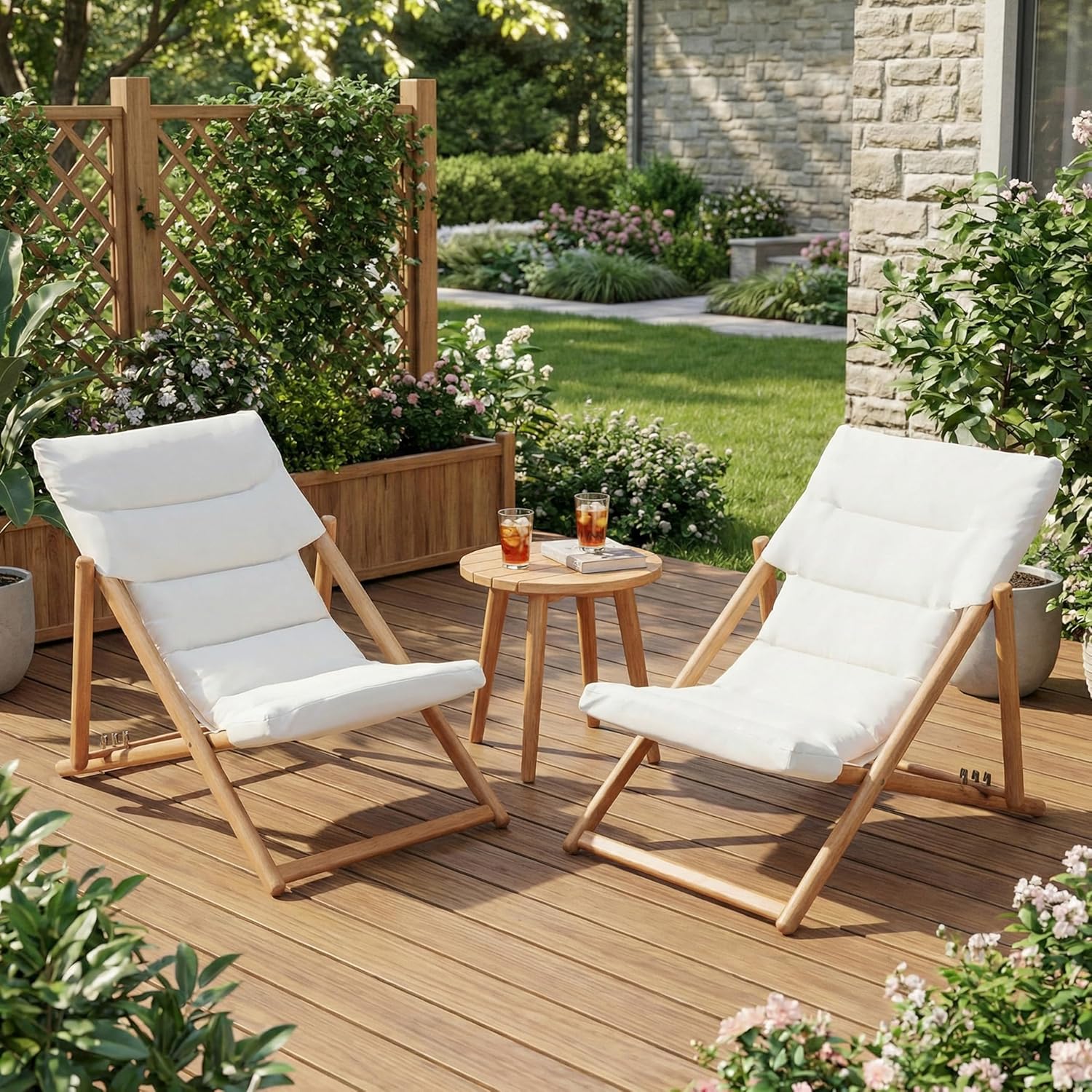 Relax outdoors in style with this folding wooden lounge chair set, designed for comfort, durability, and convenience. Featuring a natural solid wood frame and a thick padded cushion, this chair provides excellent support whether you're enjoying the sun by the pool, reading on the balcony, or relaxing in the backyard. The adjustable reclining design allows you to find the perfect angle for lounging, while the foldable structure makes it easy to transport and store when not in use. Perfect for a wide range of outdoor settings including patios, gardens, beaches, lawns, campsites, and poolside areas, this versatile lounge chair set is an ideal addition to your outdoor furniture collection. Choose between 2-pack or 4-pack sets to create the perfect relaxation space for family and guests.
