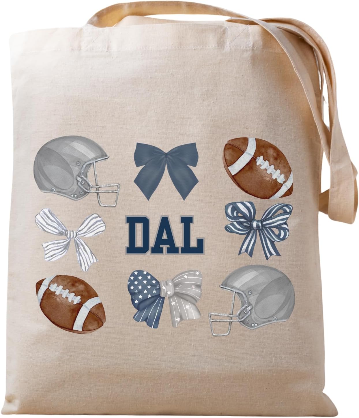 Celebrate your favorite football city with a stylish canvas tote featuring a playful mix of footballs, helmets, and cute hair bows. Each of the 32 variations highlights a different U.S. football city, paired with a charming, feminine twist that makes the design stand out. Crafted from durable canvas with reinforced stitching, this tote is built for errands, tailgates, school, travel, and everyday carry. The artwork blends sporty and cute elements, making it a favorite for fans who love a little personality in their game day style.