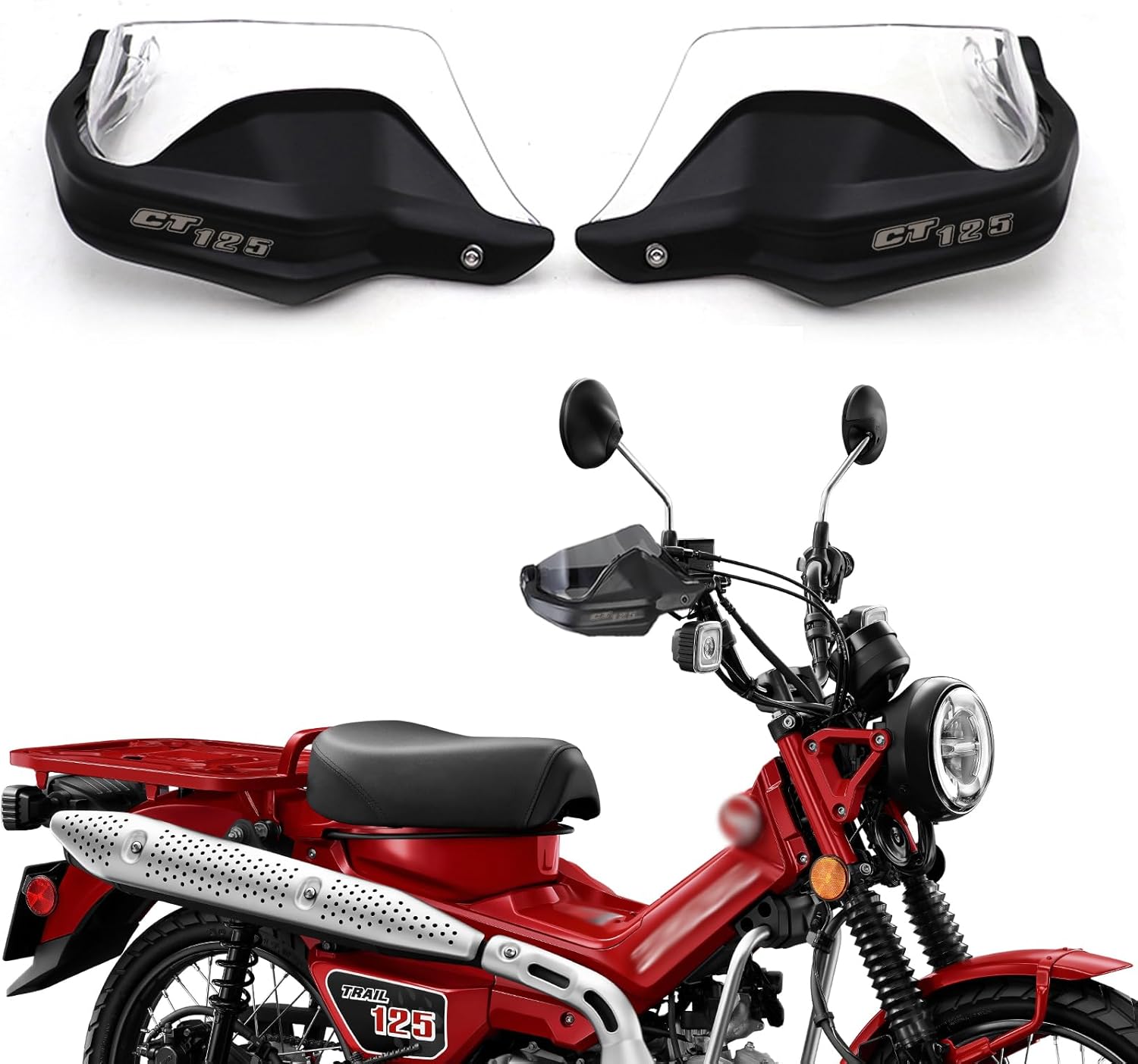 Features ▶This product can protect your hands from weather (especially wind and rain), making you more comfortable when riding. Thoroughly enhance the appearance of your motorcycle and make it more sporty. ▶Light weight, high strength, high stiffness, high tensile strength, high flatness, high temperature resistance and best gloss. ▶Made of thickened ABS plastic+ metal steel plate bracket accessories;Aerodynamic molding, impact-resistant, UV-resistant plastic, not easy to rust, not easy to break, windproof, sand-proof, protect your hands and drive safely. ▶Effectively protect your hands while driving and reduce hand and finger fatigue. The protector helps you maintain a firm grip on the handlebars while driving. Additionally, the handguard seems to withstand quite a bit of mud, keeping the lever and grip mud-free and non-slip during muddy and muddy turns. Reinforced to keep your bike and hands safe in the event of a collision. ▶Made from extremely durable plastic, these handguards are flexible and absorb shock, rather than transmitting it to the handlebars and bar mounts like rigid aluminum or steel guards. There are advantages. ▶Exquisite appearance: Professionally manufactured, fine workmanship, stylish design, fashionable design ensures perfect fit and easy installation, while making your motorcycle look more fashionable, making you eye-catching when riding a motorcycle, and providing a perfect decoration for your motorcycle. ▶Easy to install, but installation instructions are not included. Fitment: For CT125 Trail 125 Hunter Cub CT125 Hunter Cub (JA55/JA65) 2020-2021-2022-2023-2024-2025-2026 (Please make sure this product is suitable for your motorcycle before purchase.)