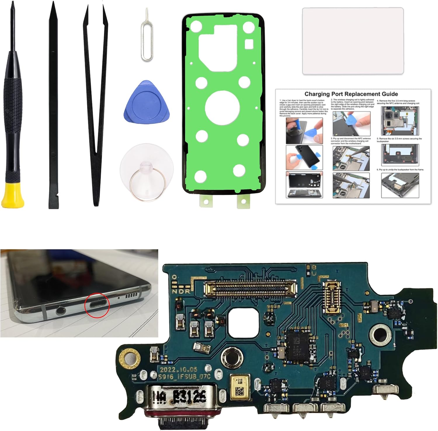 for Galaxy S23 FE Charging Port Replacement US Version, Dock Charging Board Compatible with Samsung S23 FE SM-BS711U/U1, Includes Instruction & Toolkit