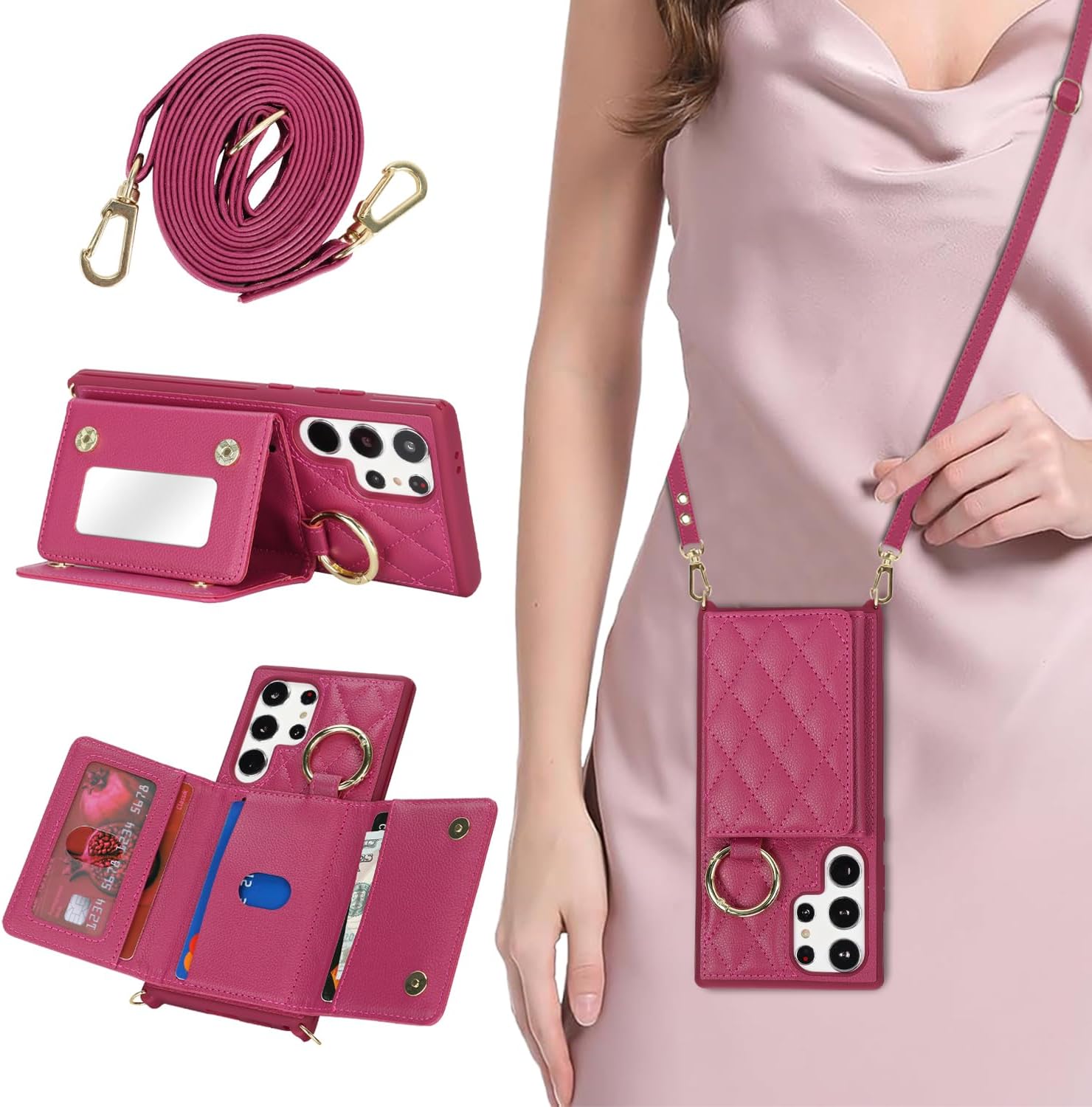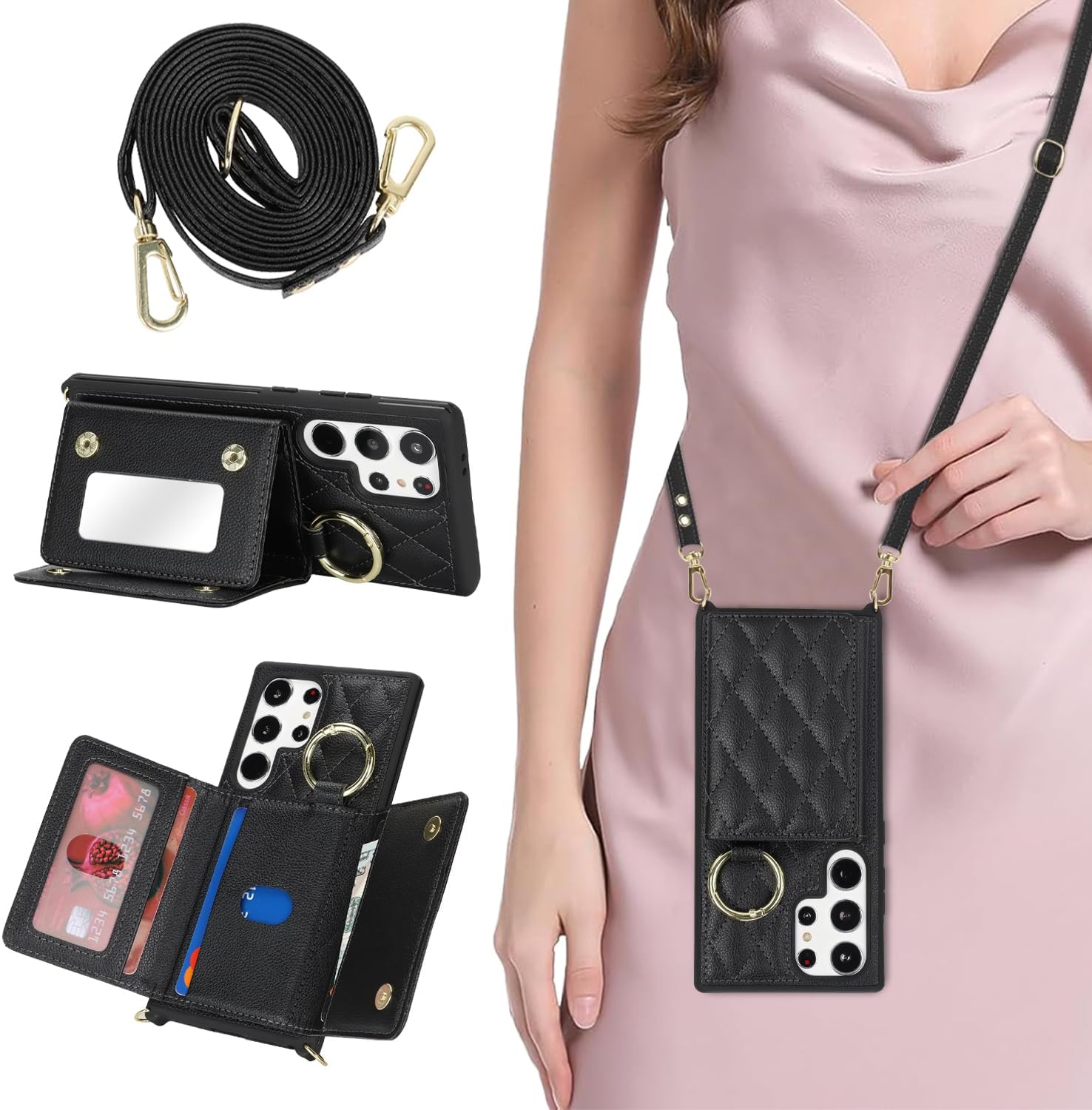 for Galaxy S25 Ultra Phone Case with Card Holder and Strap