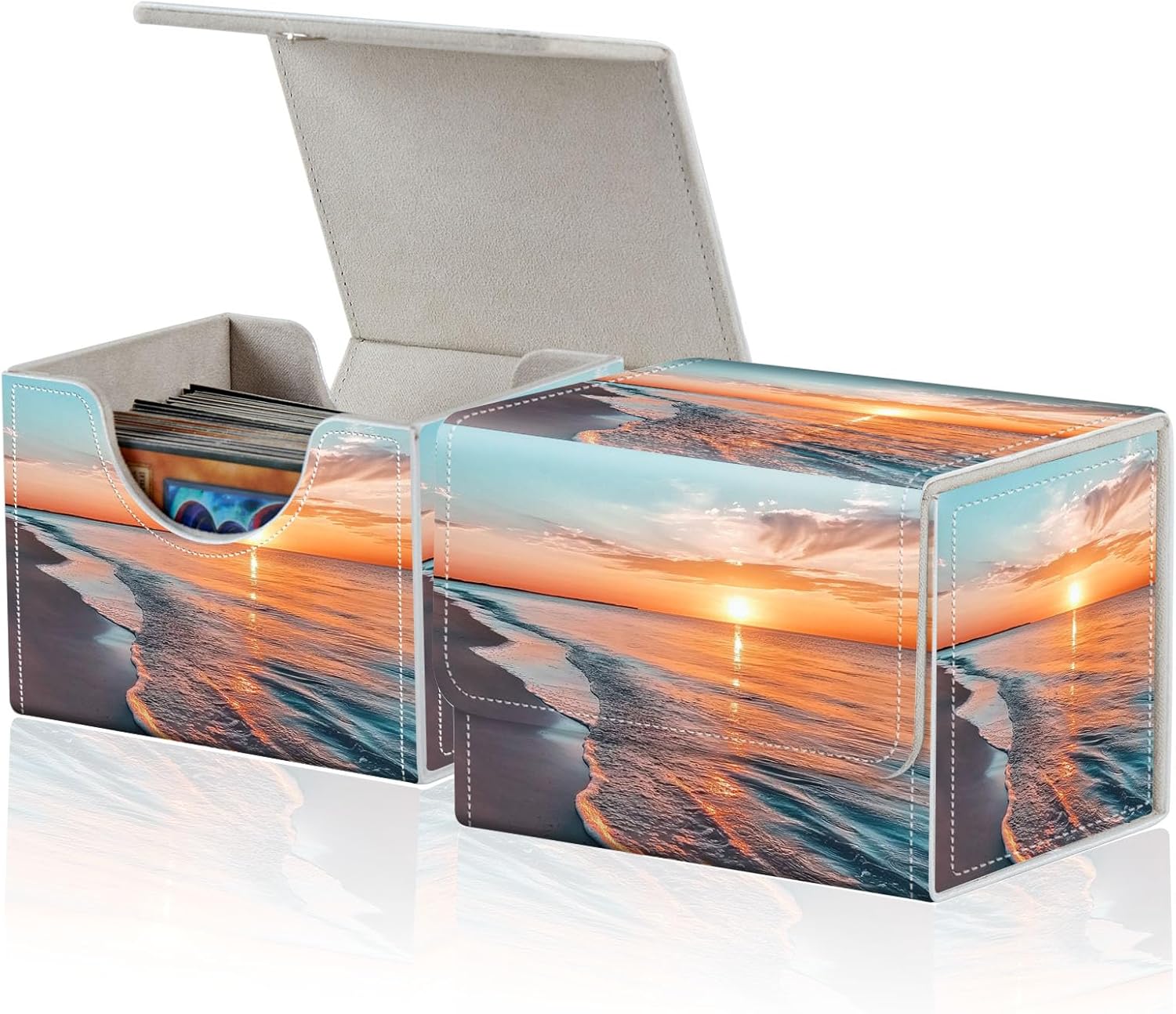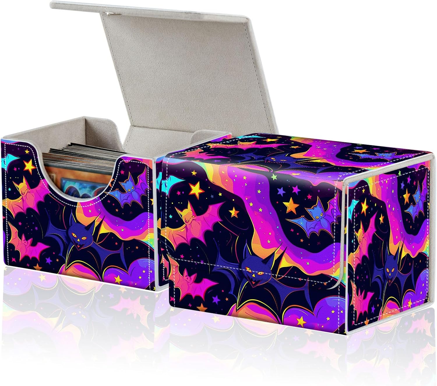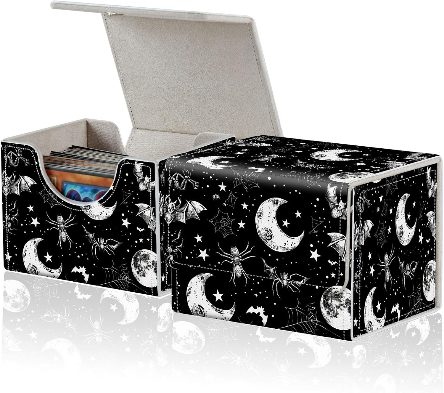 Product Description: Brand:ACWDMKH SIZE:4.1*3.54*3.15 inch Feature: 1.Excellent Material:The surface of this box is made of high-quality artificial leather, with exquisite wiring, high quality, and super strong support. provide sufficient protection for valuable game card,so that your card boxes will not be broken or deformed during transportation. 2.Safety Lock:Our Deck playing card box has safe self-locking lid,High strength magnets keep your deck box closed even when held upside down. No more card spills. 3.Freedom of use: The Convertible line is designed to present cards in new and unique ways. Remove the lid, attach it to the bottom or start tilting your box in a wide variety of ways. 4.Wide Range of Use: This deck box is suitable for collecting multiple types of cards, such as MTG Commander deck cards, TCGs and other collectible cards. 5.Cute and nice gift:This card box fit for mtg can easily hold up to 120 single sleeve cards or 100 double-sleeved collectible cards, can comfortably house your favorite Magic Commander deck and the ACWDMKH card deck box is a good gift for you, your family and friends.